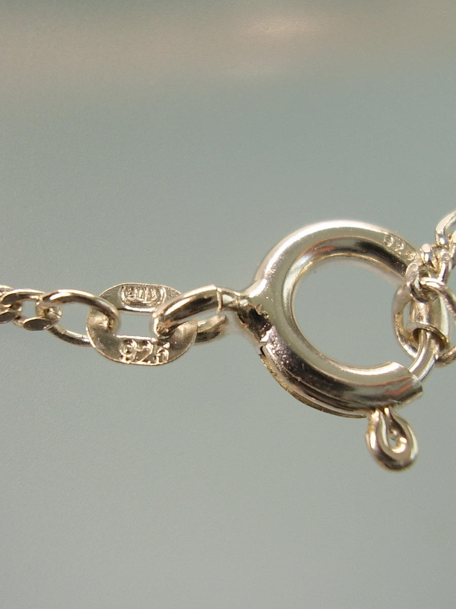 Getragen wird der Anhänger an einer Silberkette (Silber 925) mit Federring-Verschluss.