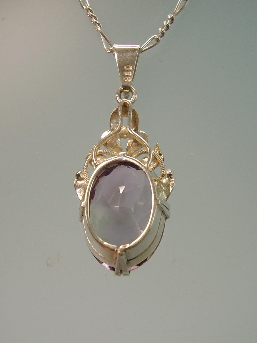 Er ist mit einem Amethyst von 12 ct. im Ovalschliff besetzt.