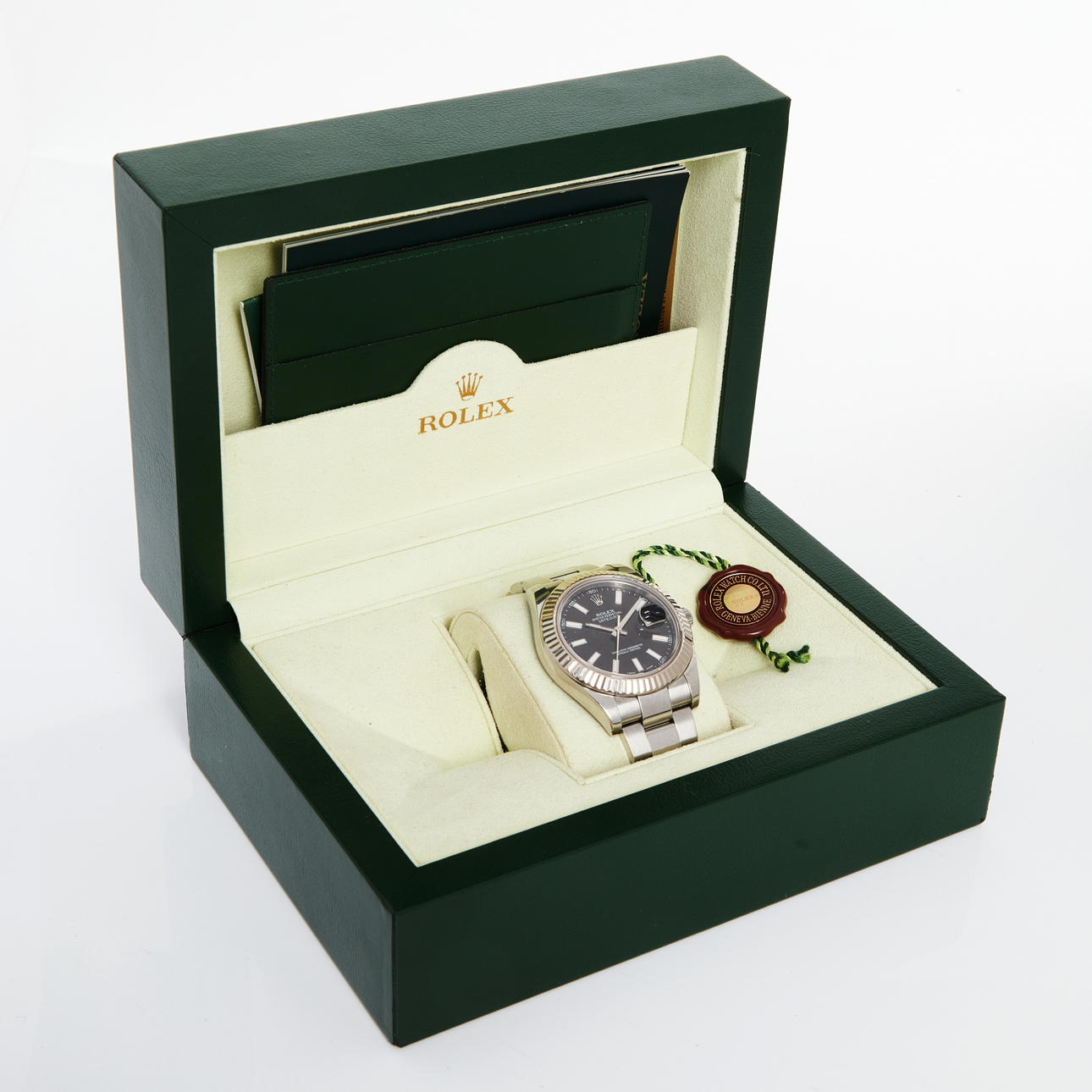Automatik, Datum, Stahl, 41 mm, Ref.-Nr.: 116334, Seriennummer G490398, Oyster Link aus Stahl, Faltschließe. Gesamtgewicht 151,6 g Inklusive, Esche in Leder, Referenzkarte im Etui, Handbuch etc.