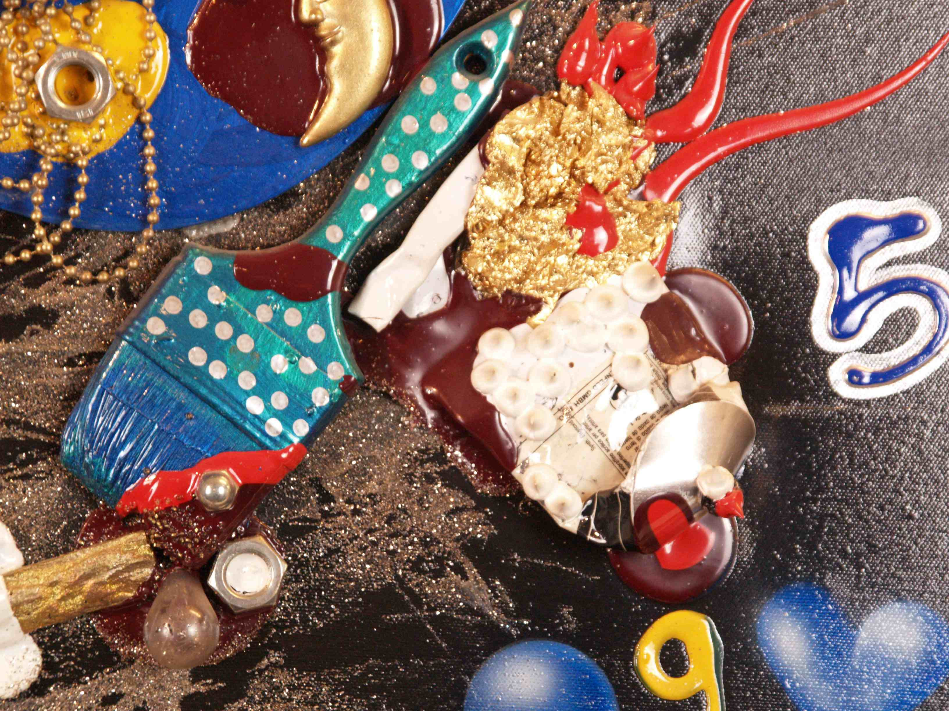 2147791. - MICMAC. - 3D-Collage, Mischtechnik auf Leinwand.