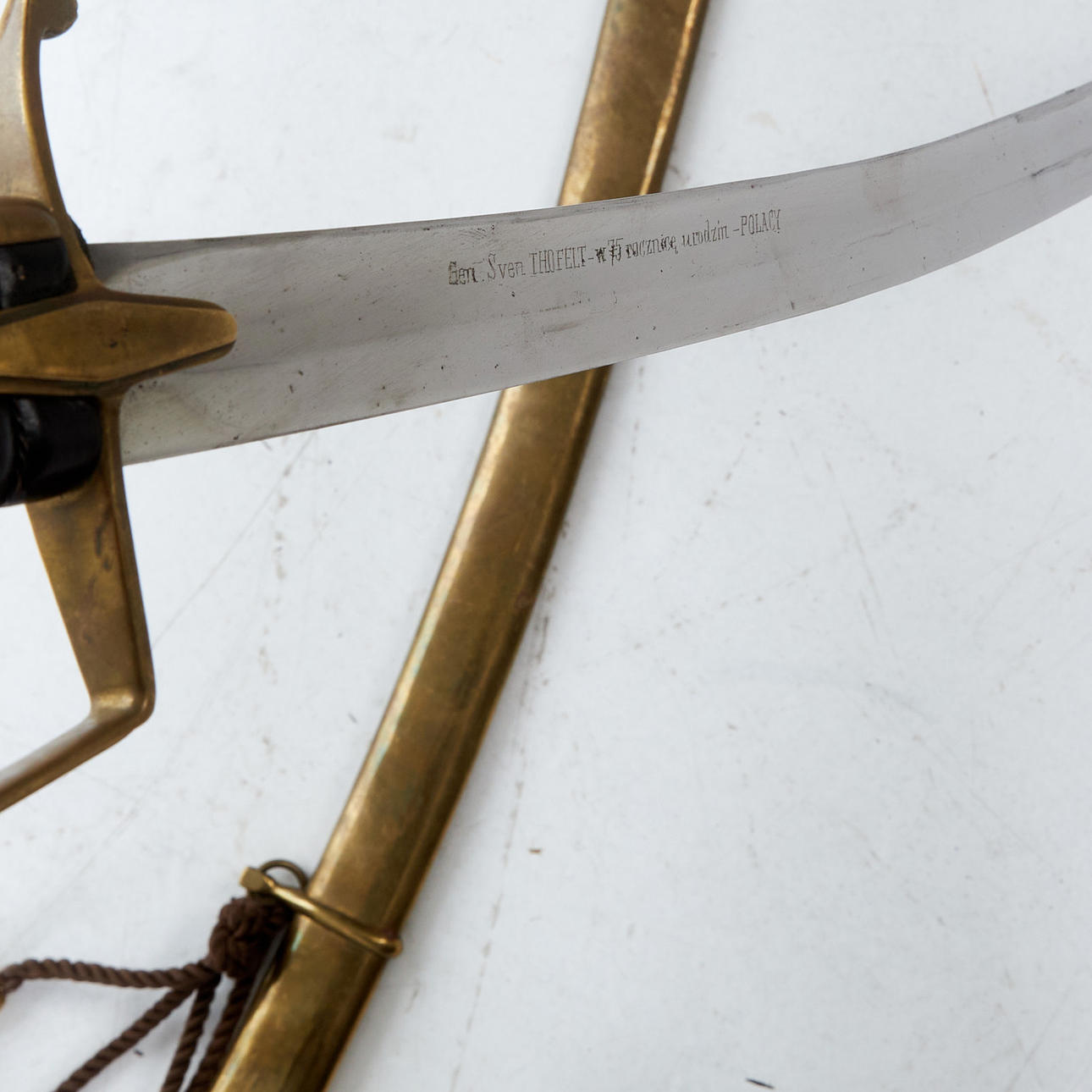 Messingmontierung, auf der Klinge bezeichnet Gen. Sven Thofelt w 75 rocznice urodzin POLACY, mit Balken, Länge ca. 96 cm GESCHICHTE: Sven Thofelt (1904-1993), schwedischer Militär und Sportler als Fechter und moderner Fünfkämpfer. Bei den Olympischen Sommerspielen 1928 in Amsterdam gewann er olympisches Gold im modernen Fünfkampf. 1936 war er in Berlin Teil der schwedischen Fechtmannschaft, die die Silbermedaille gewann.