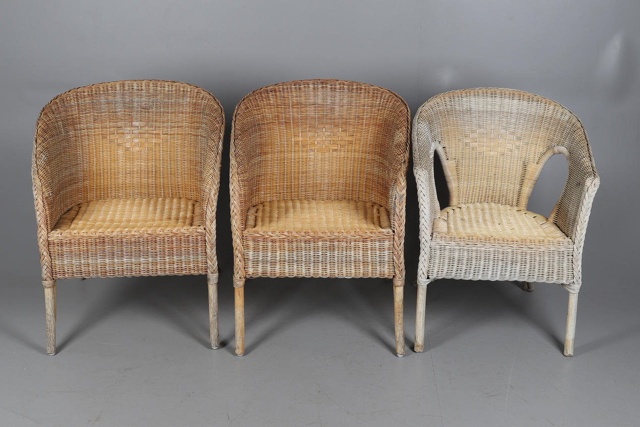 2153275. EIN PAAR WEIDEN WINTERGARTENSTÜHLE UND EIN ANDERES ÄHNLICHES.