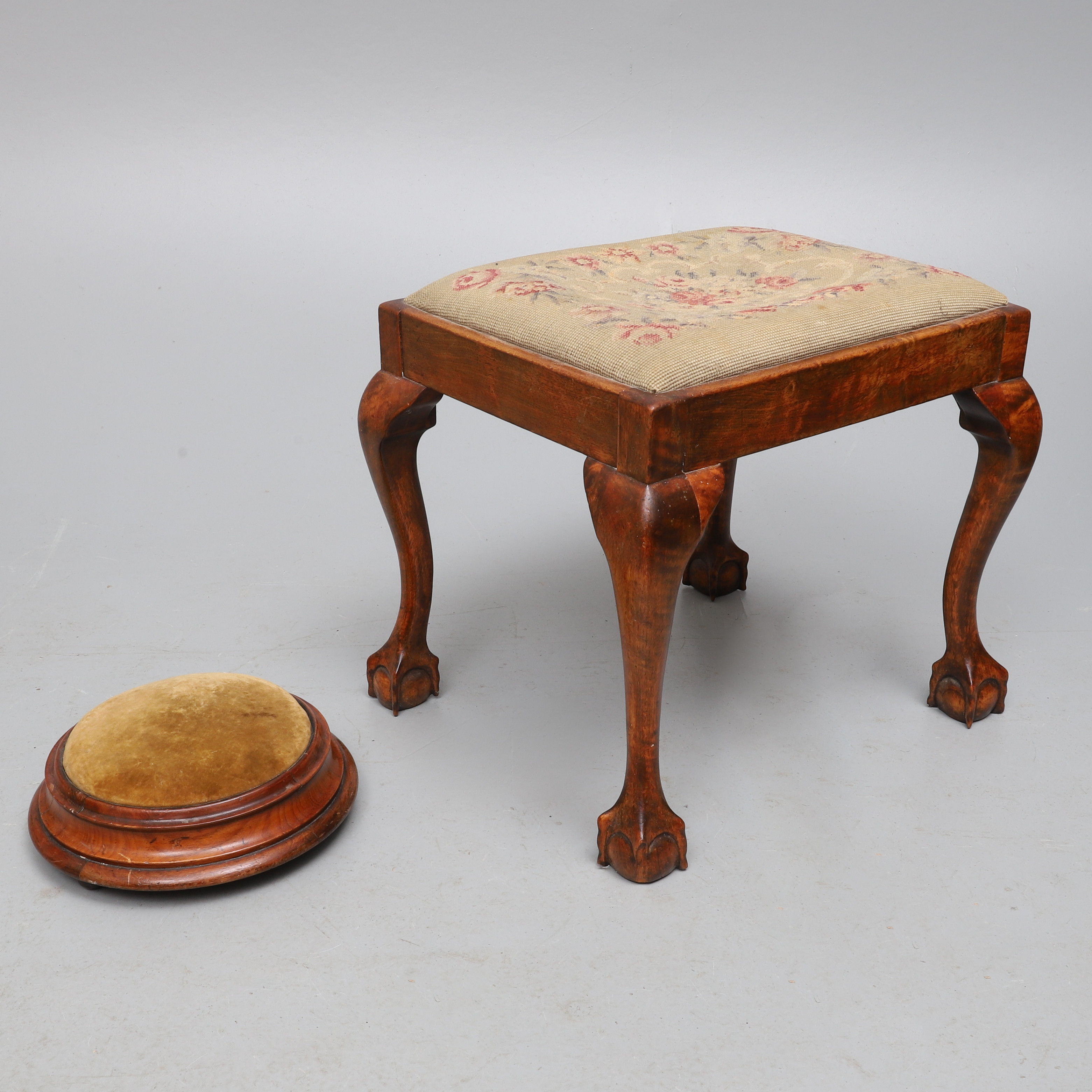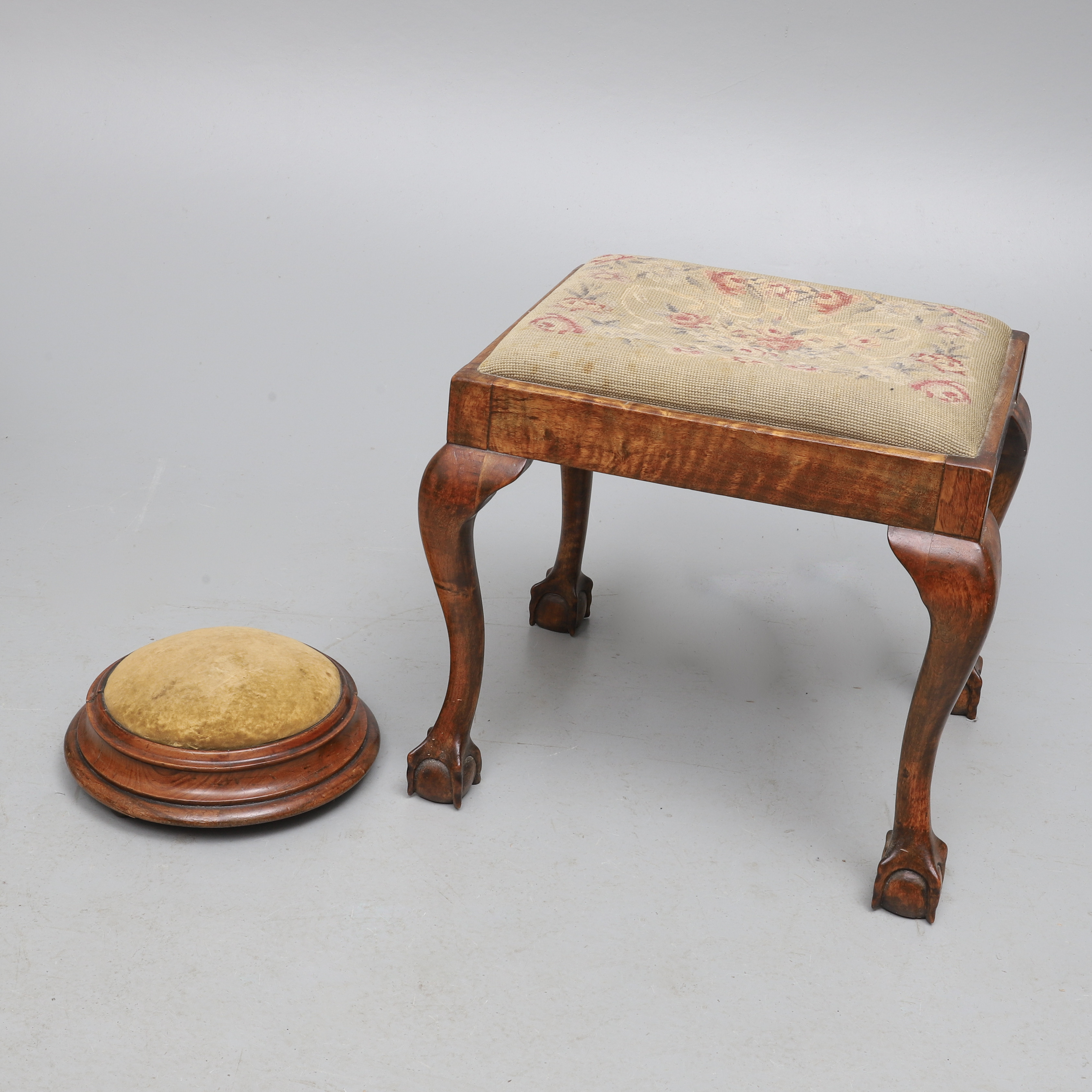 2154791. EIN VIKTORIANISCHER RUNDER HOCKER AUS NUSSBAUM, UM 1860.
