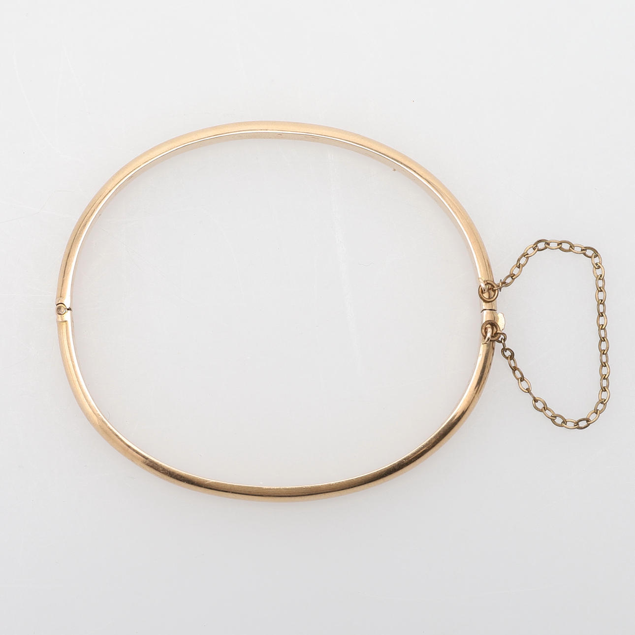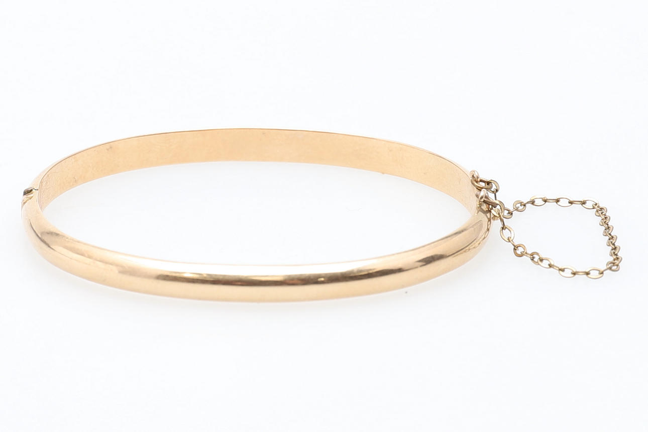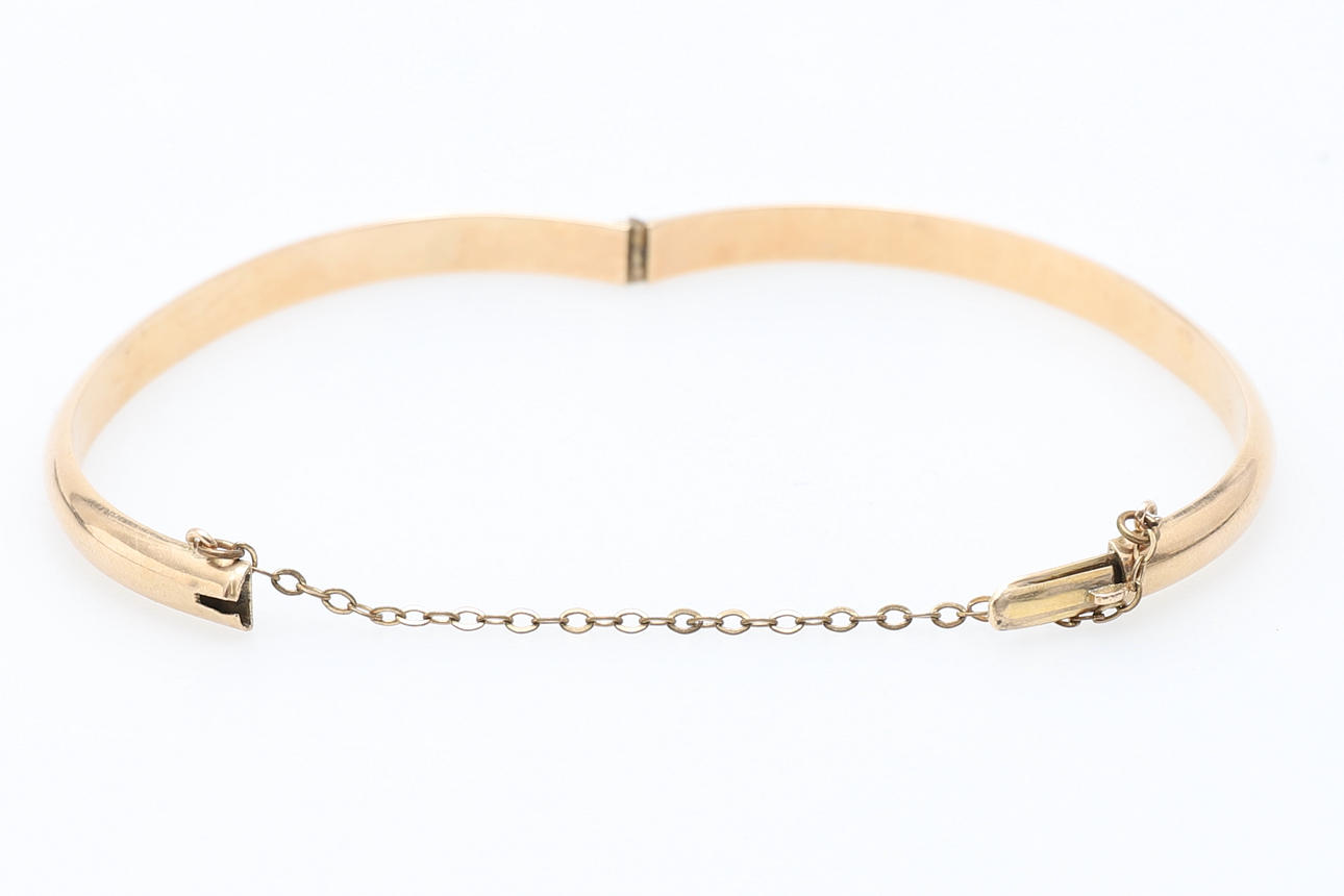 die hohlen D-Profile, zum Zungenschnappverschluss, Sicherheitskette, handgravierte 9 Karat, 60 mm Durchmesser, 6,6 g Gesamtbruttogewicht.