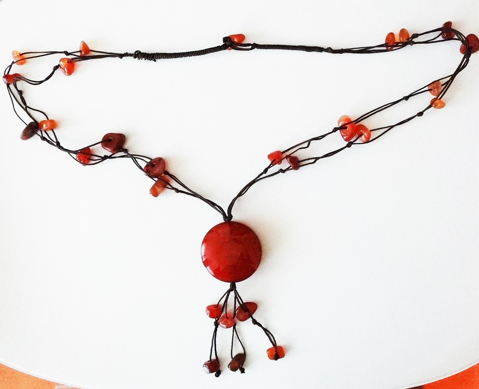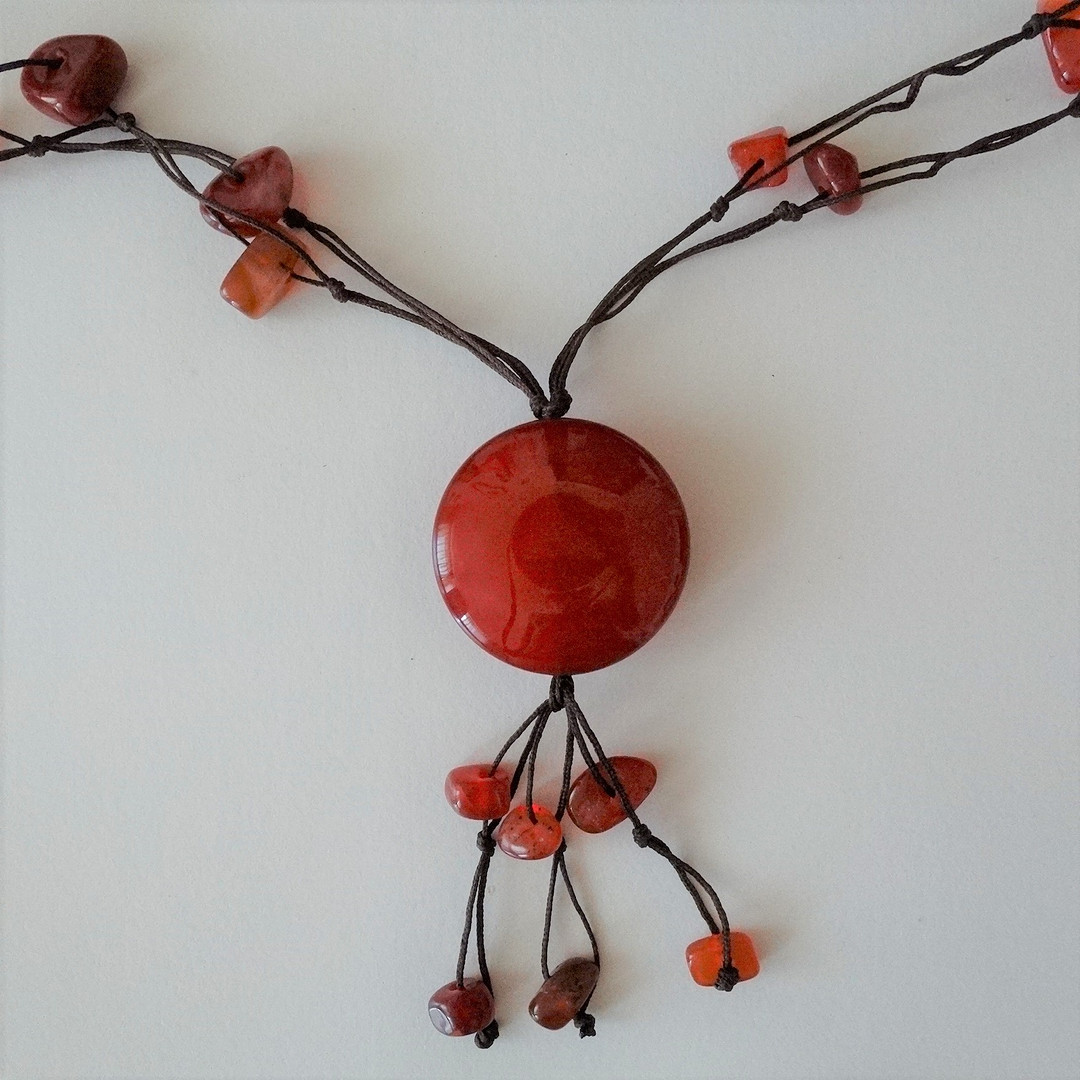 2160356. KARNEOL KETTE mit Stoffkordel.