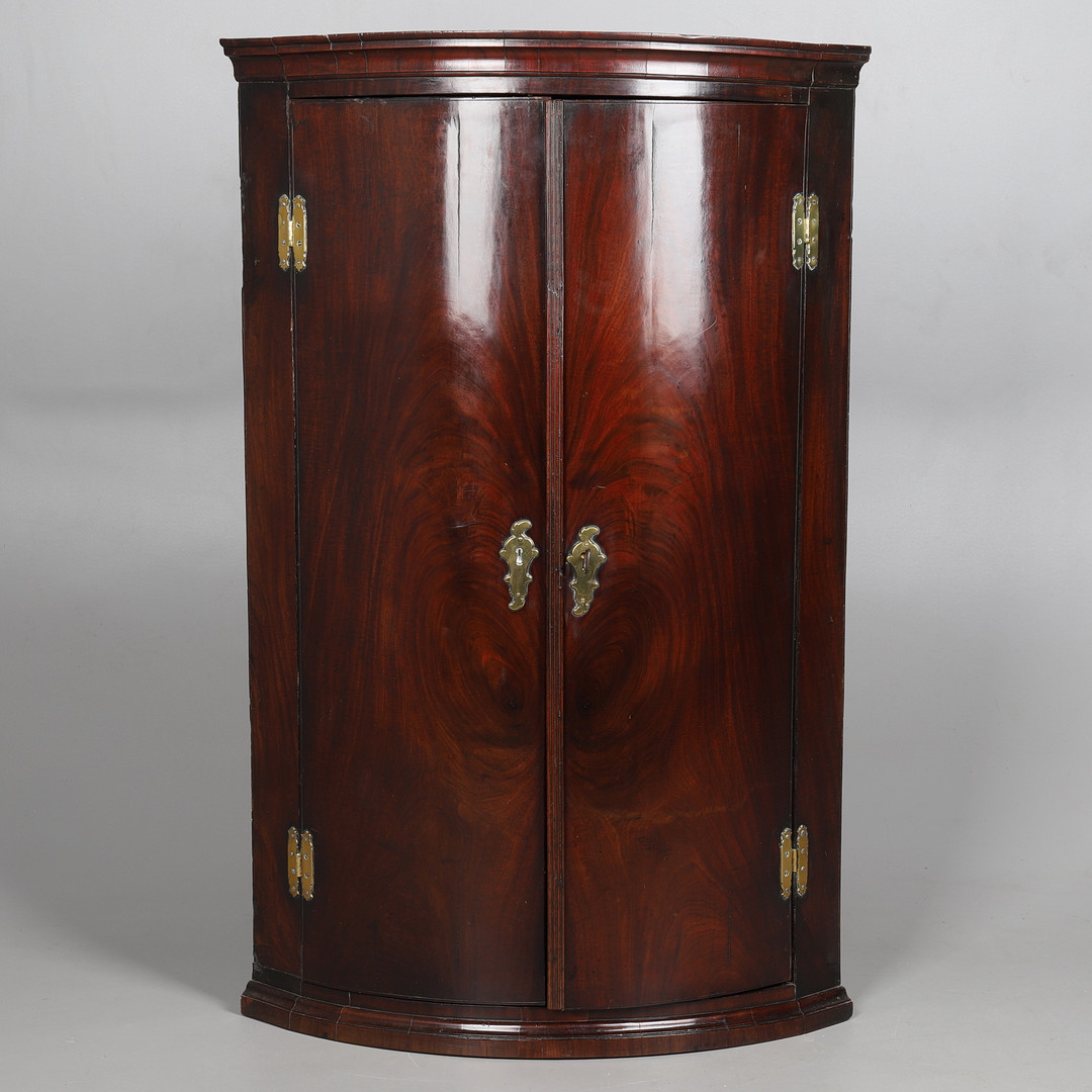 2160725. GEORGE III MAHAGONI-BOGEN-HÄNGE-ECKSCHRANK VORN.