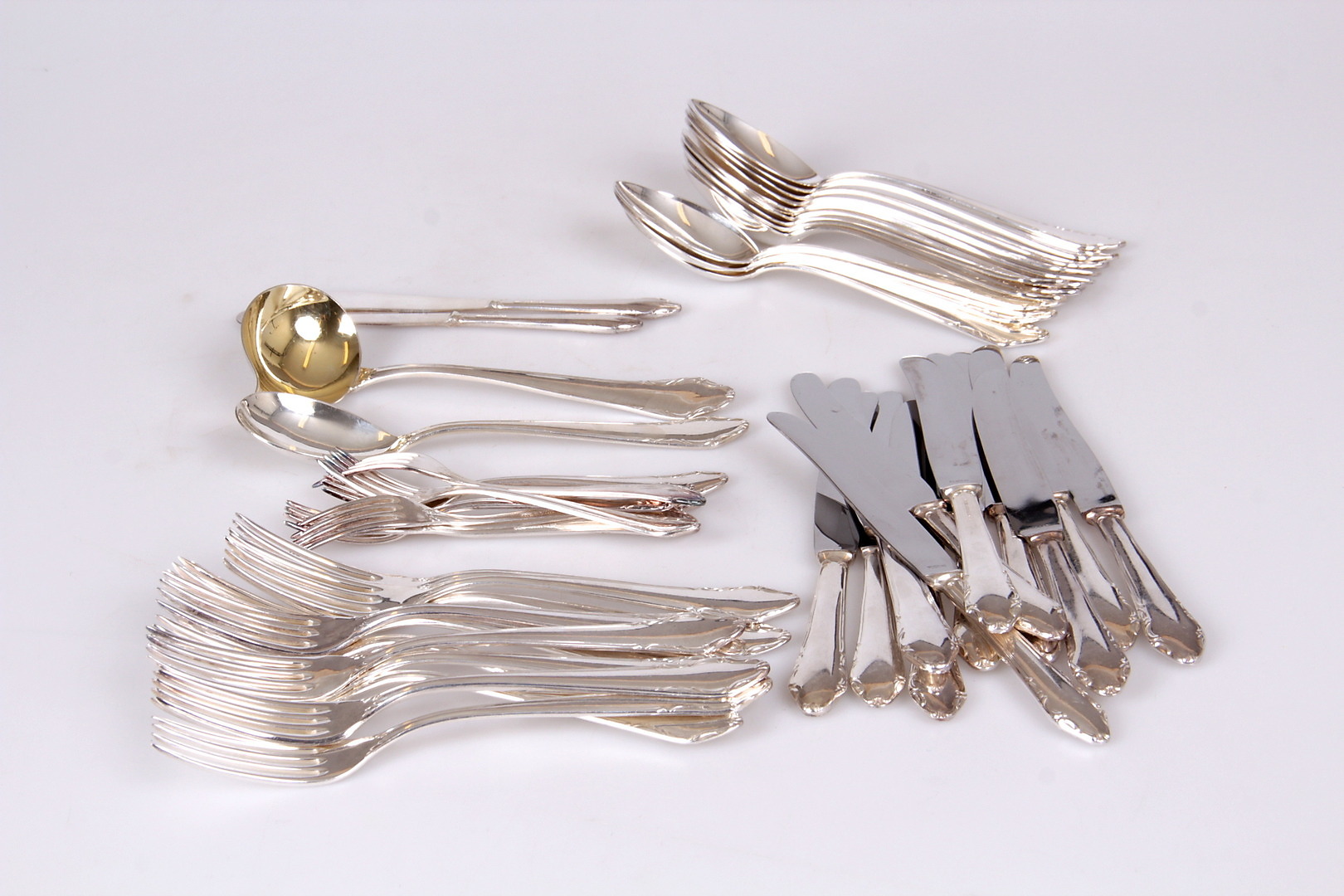 216089. BESTECK, 46-teilig, Neusilber, "Leckö", 20. Jahrhundert.