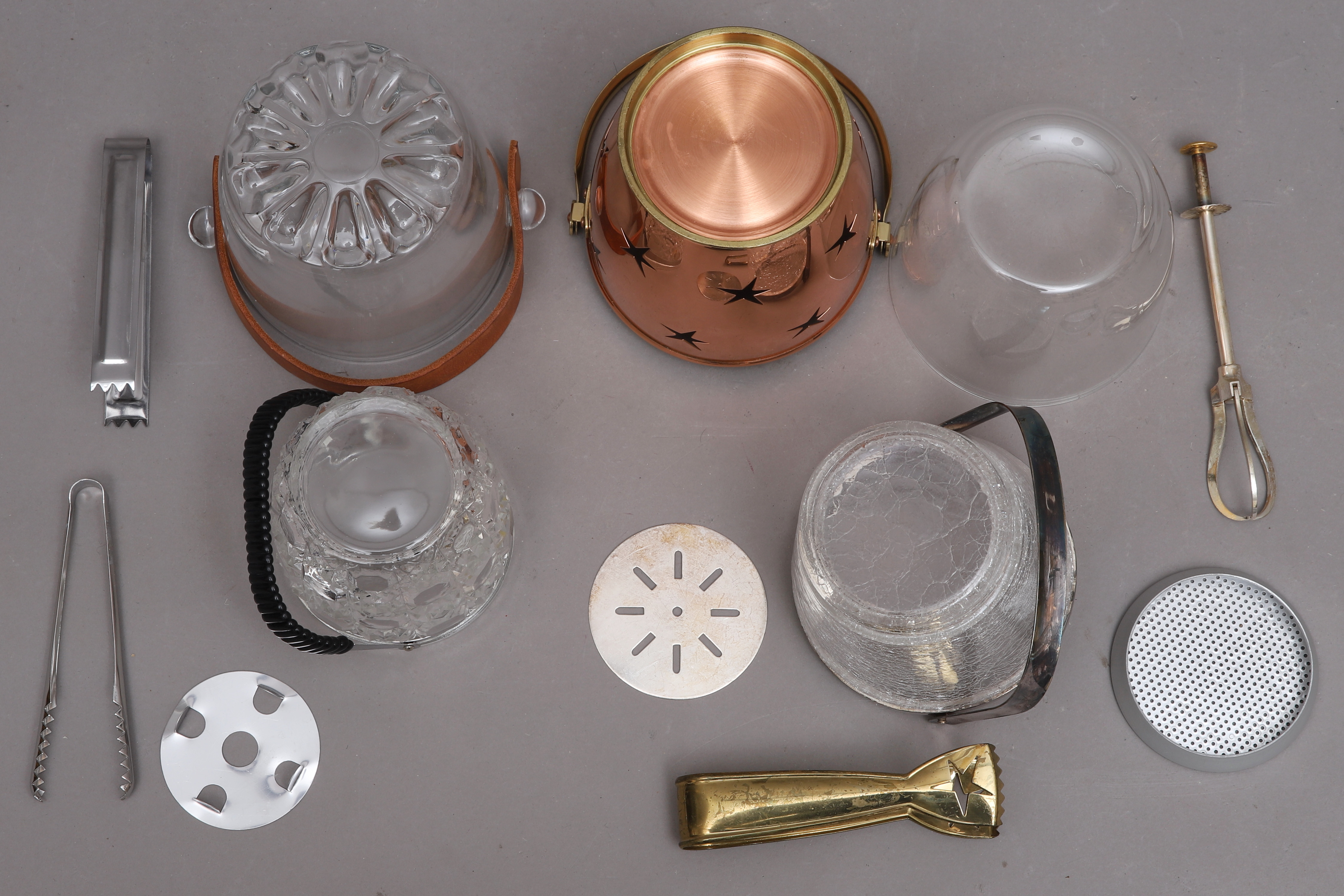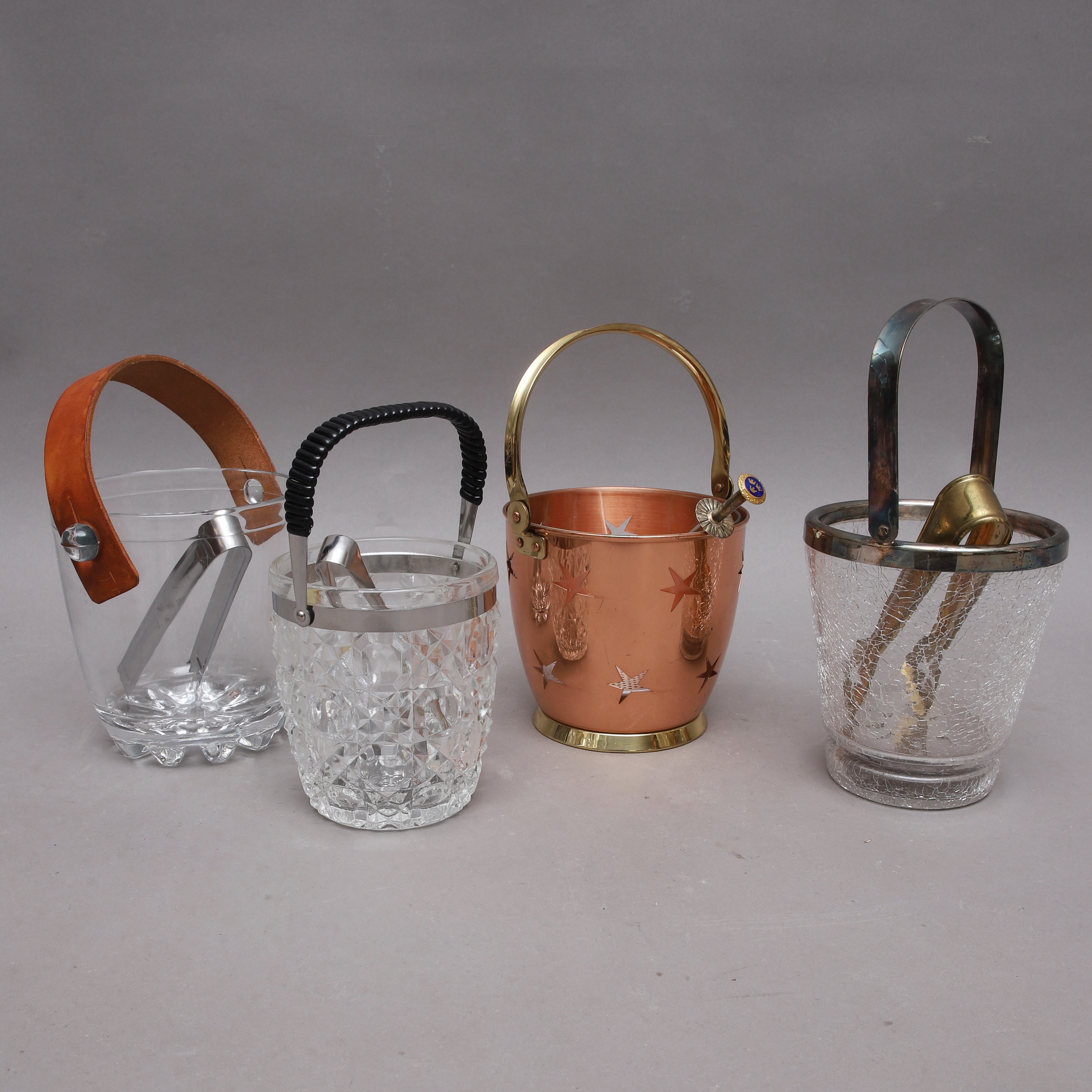 2161953. EISEIMER, 4 Stück, Glas & Kupfer.