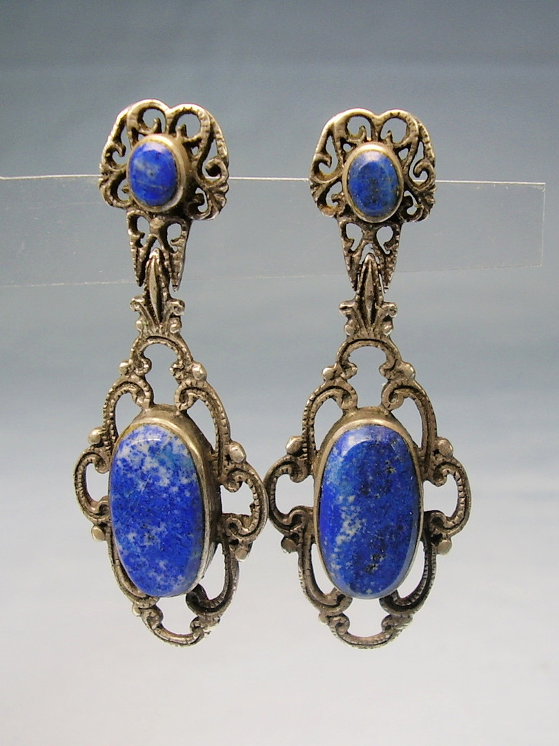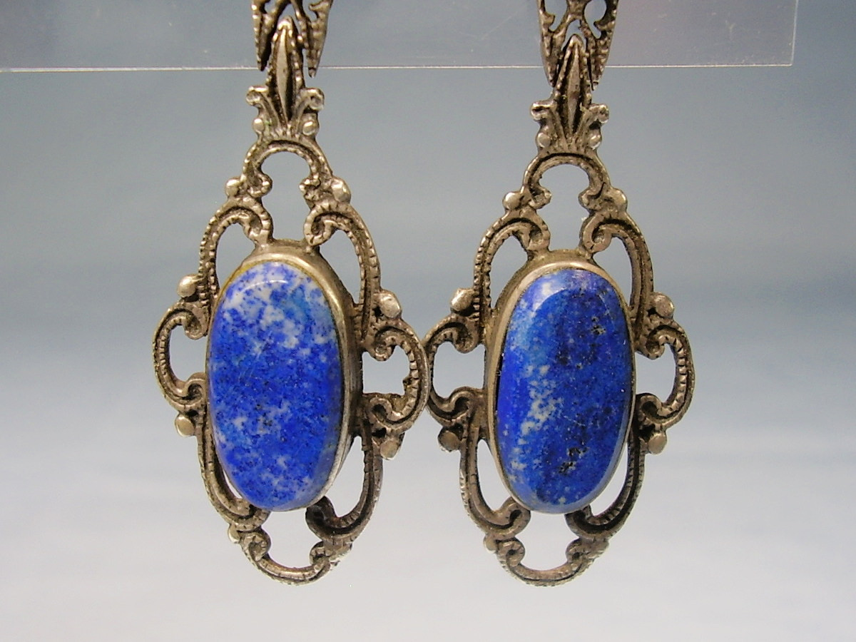 2164124. LAPISLAZULI OHRSTECKER SILBER 925 JUGENDSTIL.