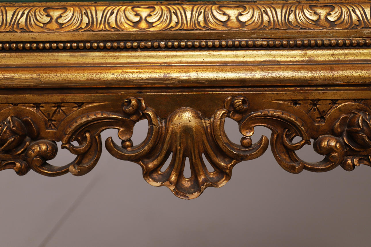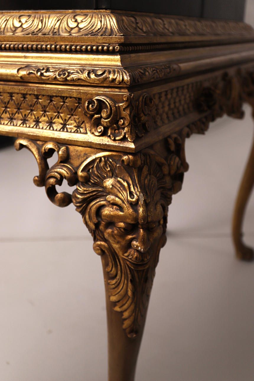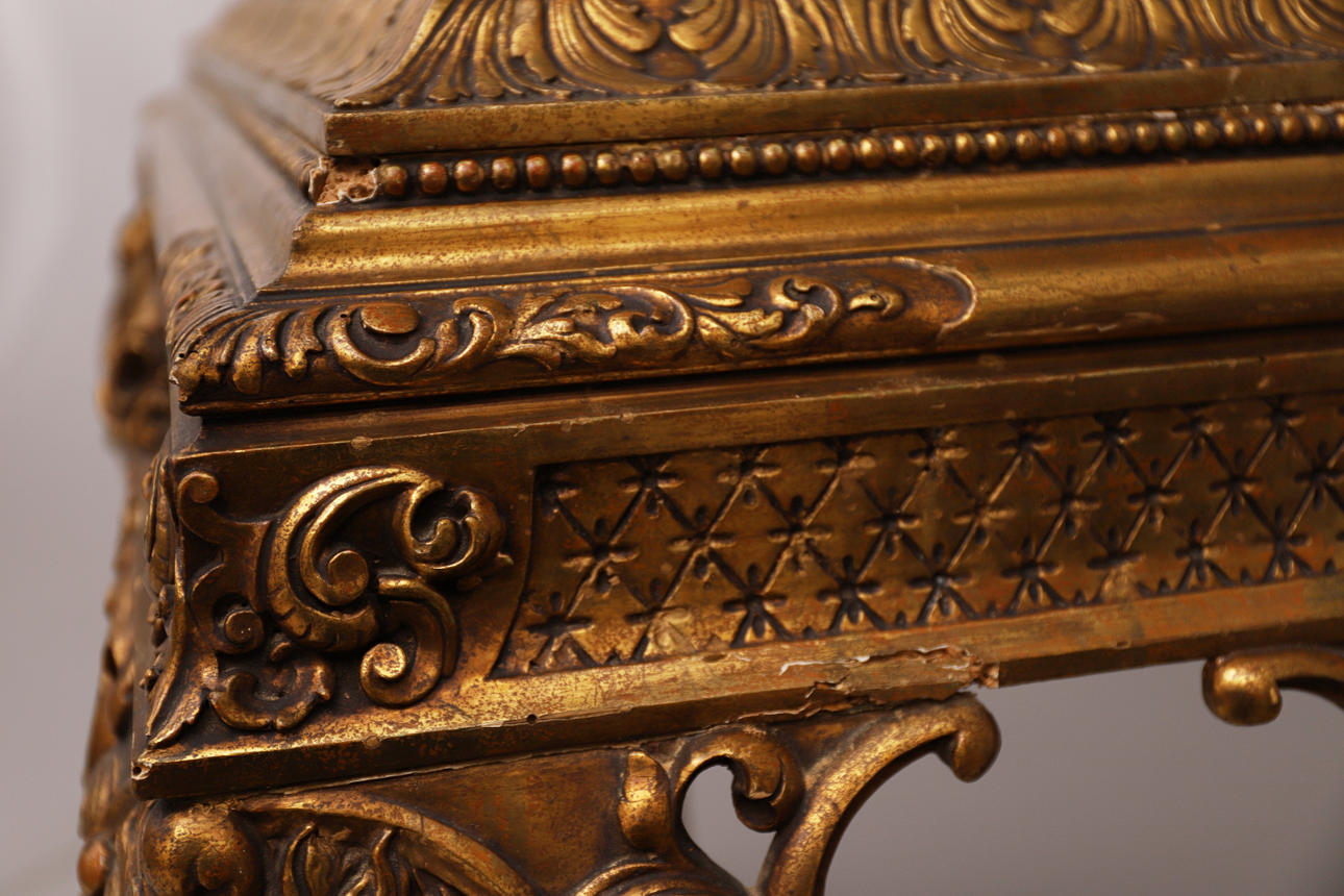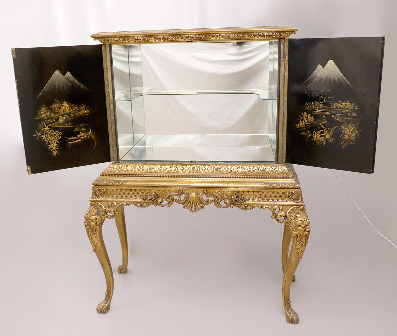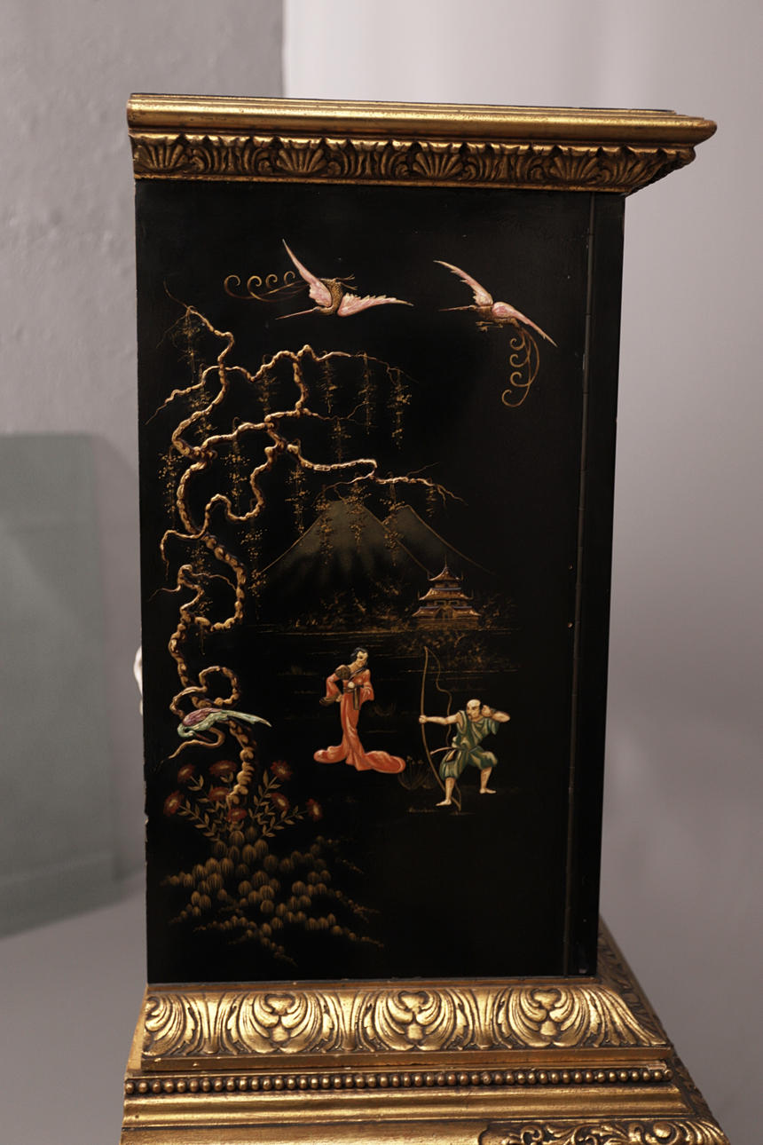 aus schwarzem und goldenem Holz mit Geisha-Figuren.