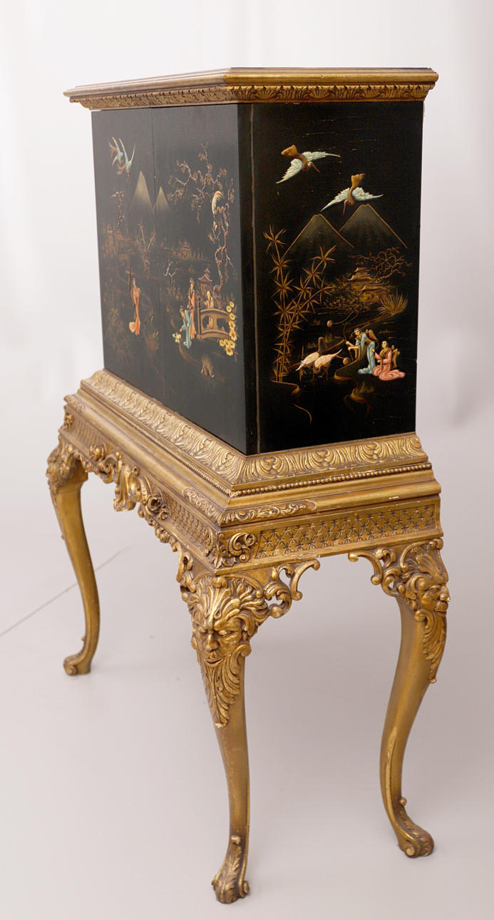 SPANISCHER SCHRANK - LACKIERTE BARMÖBEL MIT CHINOISERIEN.
