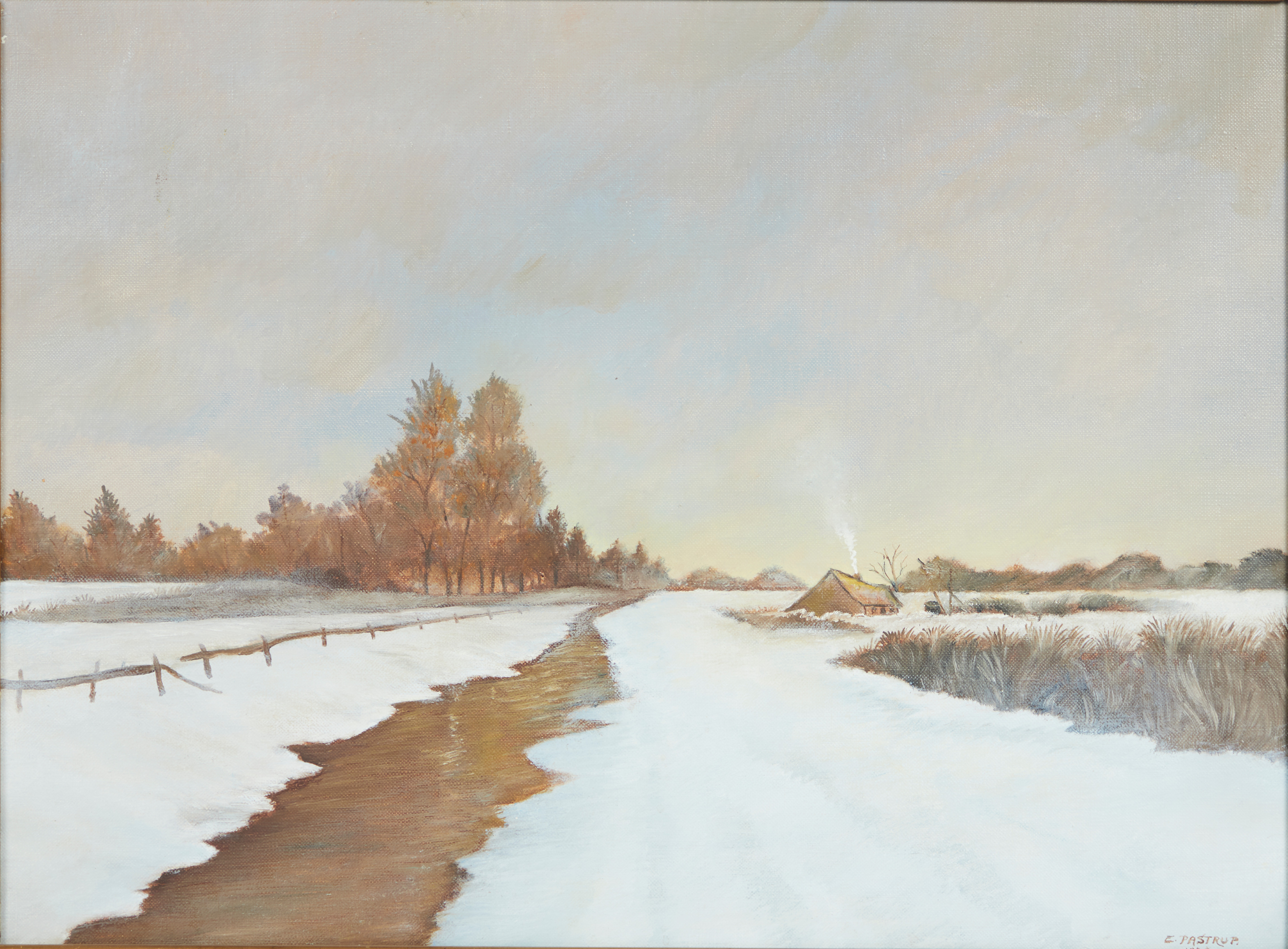 2168283. E. PASTRUP. Gemälde, Winterlandschaft, Dänemark.