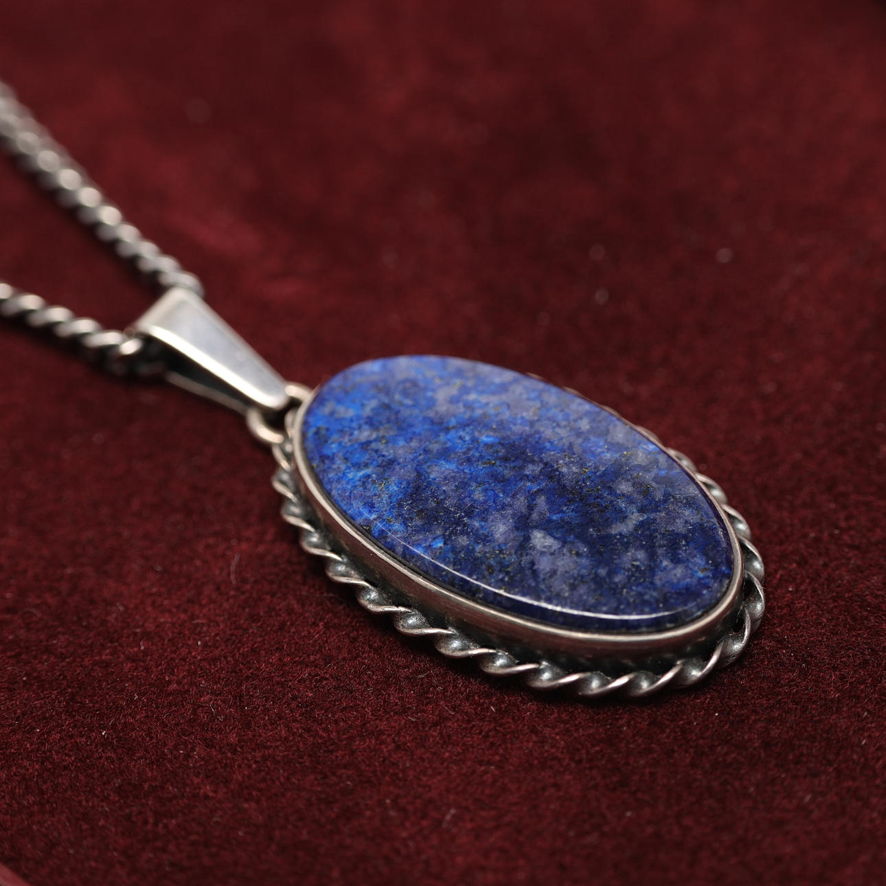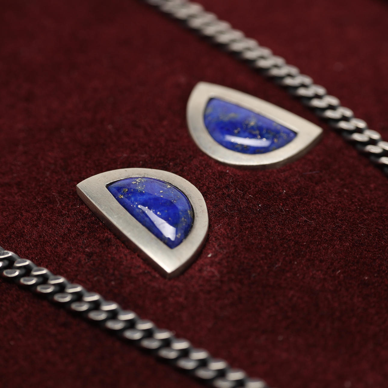 Sterlingsilber und Lapislazilu. Halskette L ca. 42 cm. Ohrring mit Stift H ca. 14 mm. Markiert AB 925S. Originalverpackung enthalten.