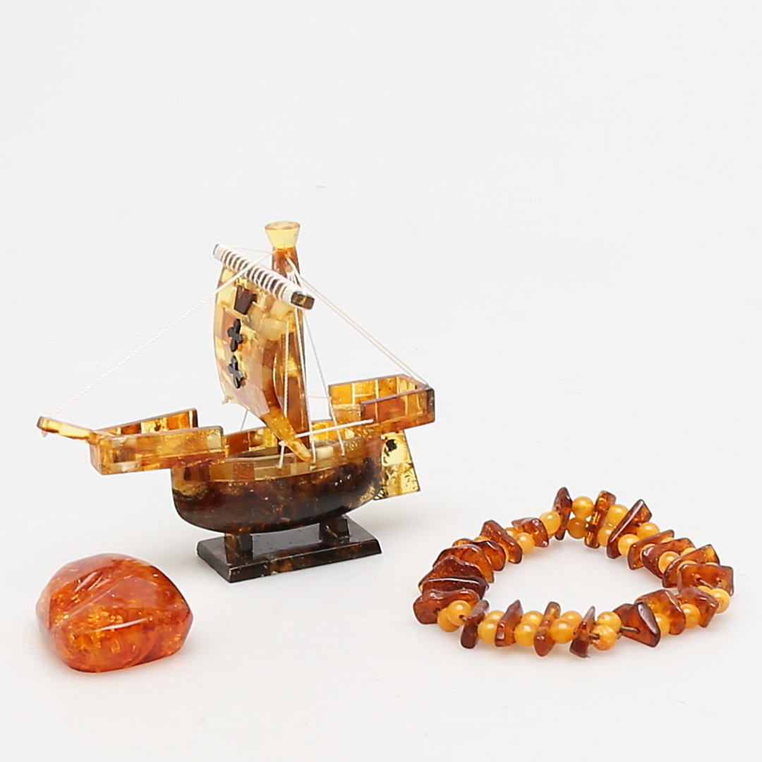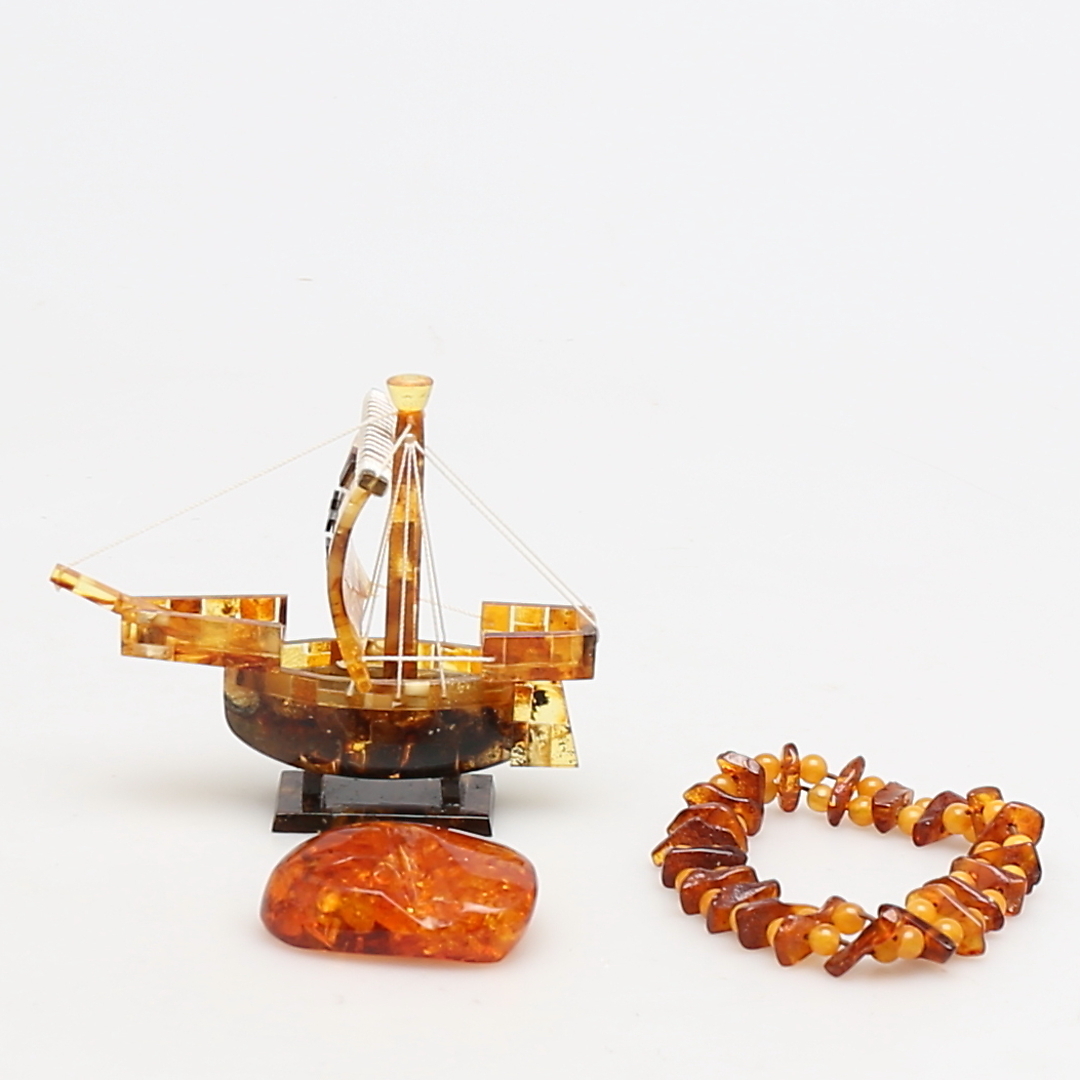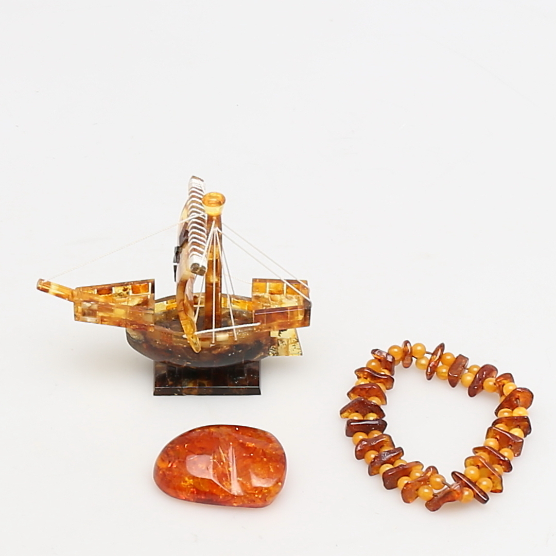 217349. Ein Menge DER KINDER. 3 Teile. Armband, Stein und Schiffsmodell.
