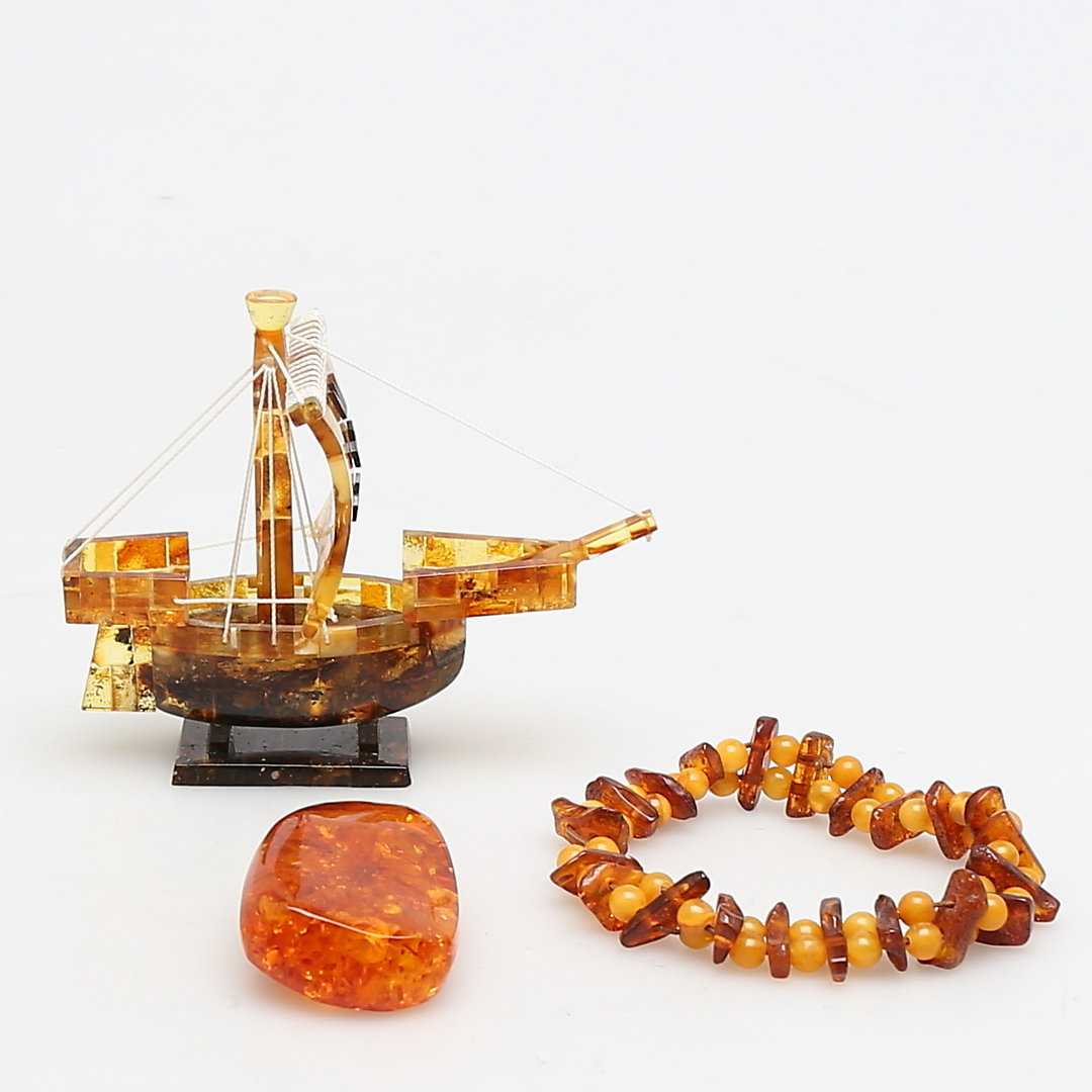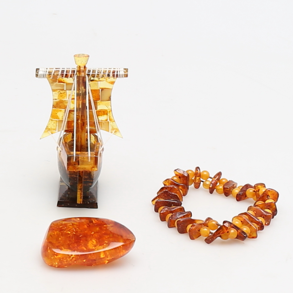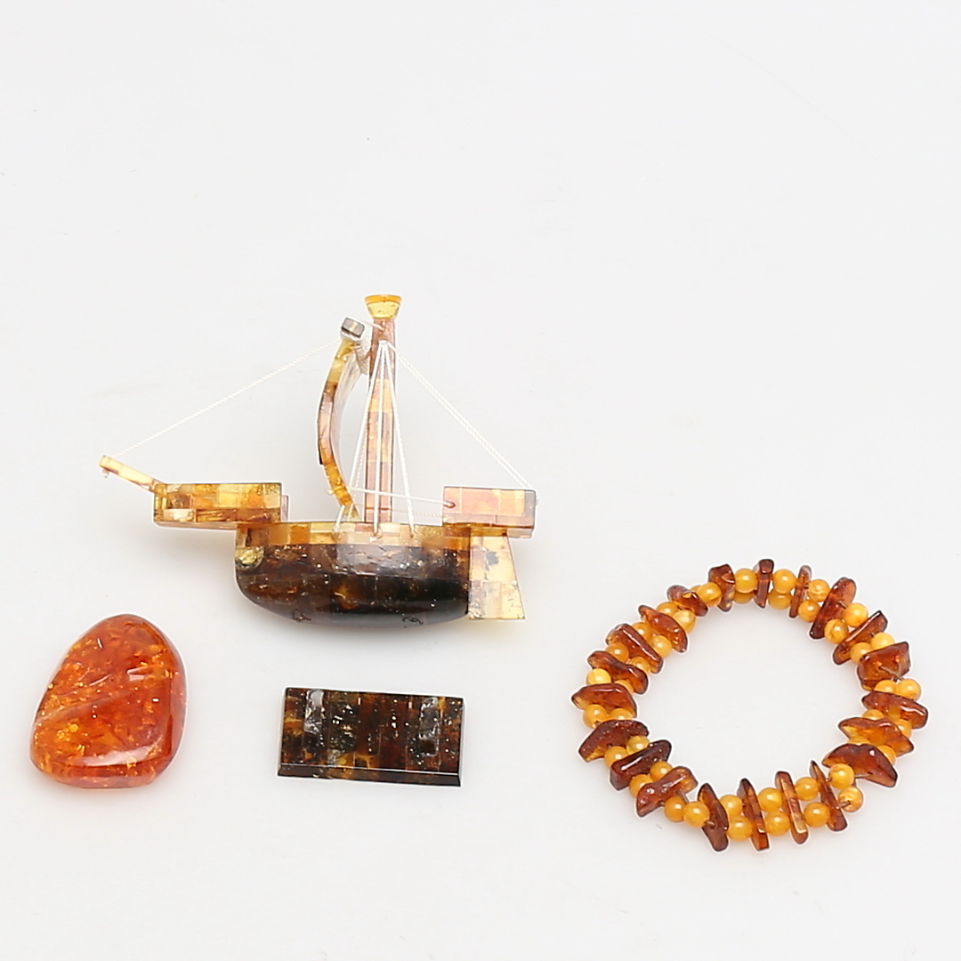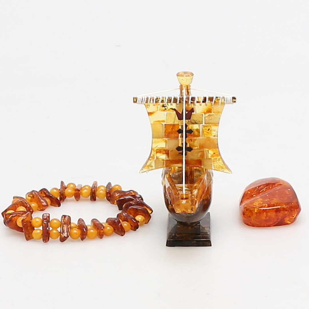 217349. Ein Menge DER KINDER. 3 Teile. Armband, Stein und Schiffsmodell.