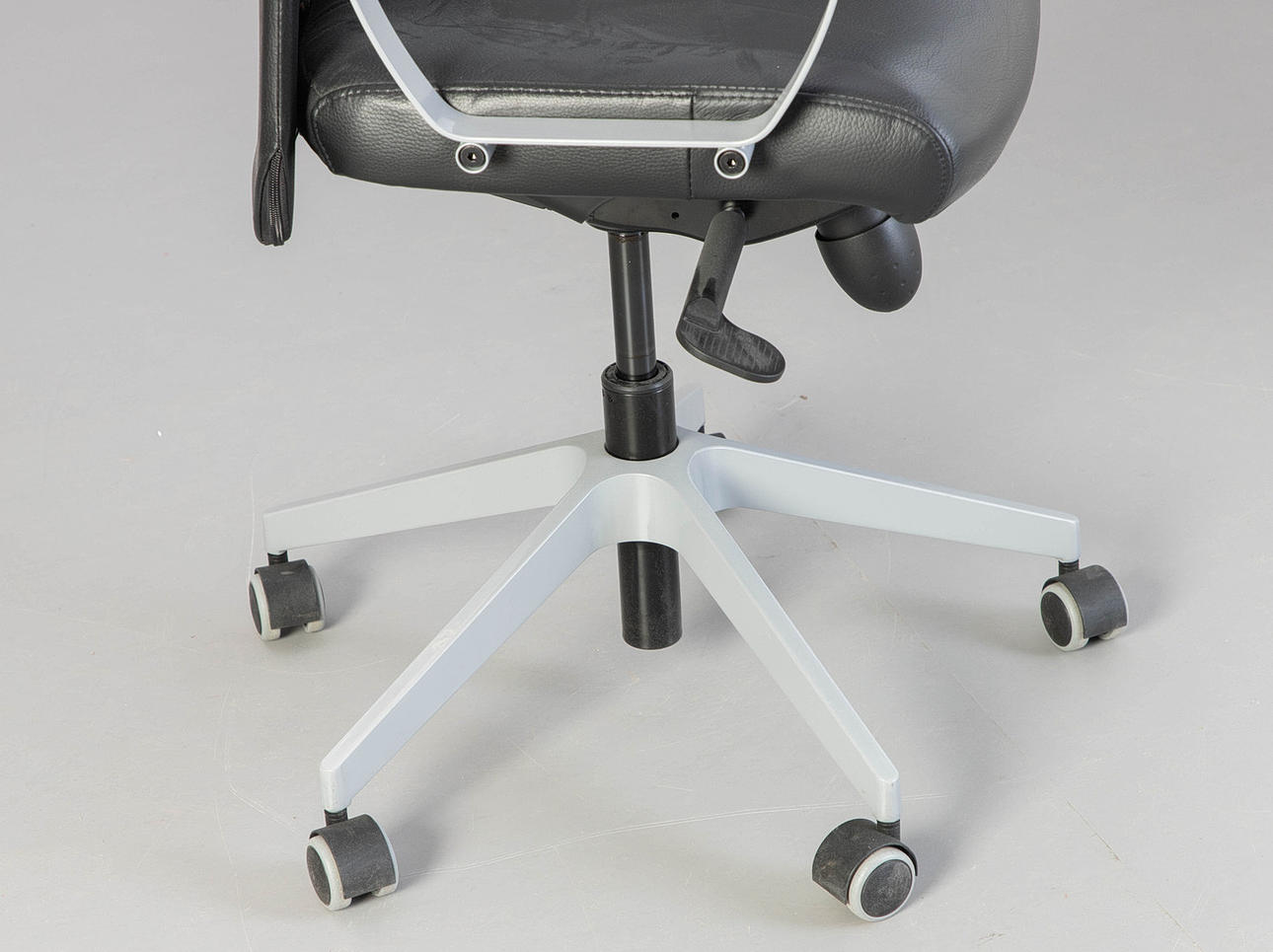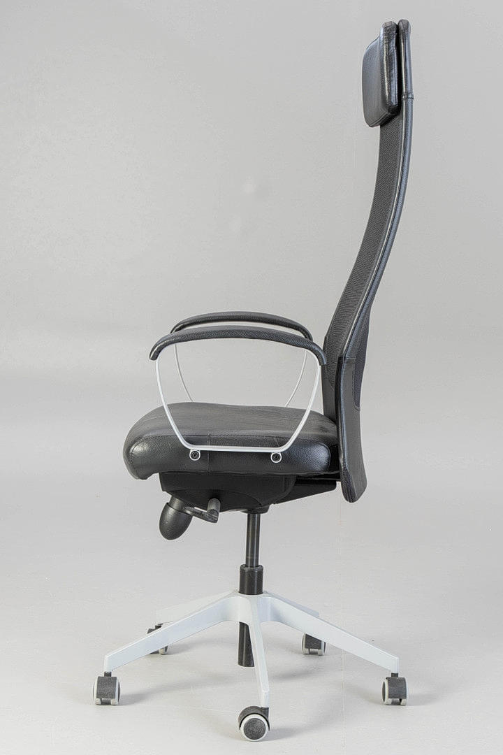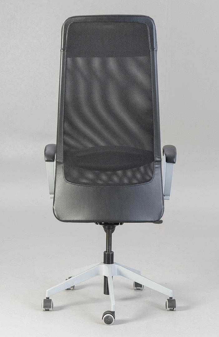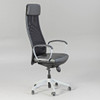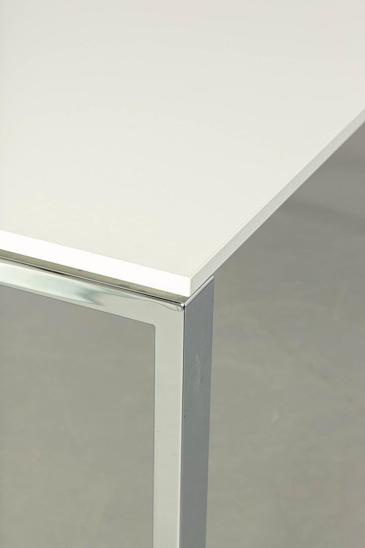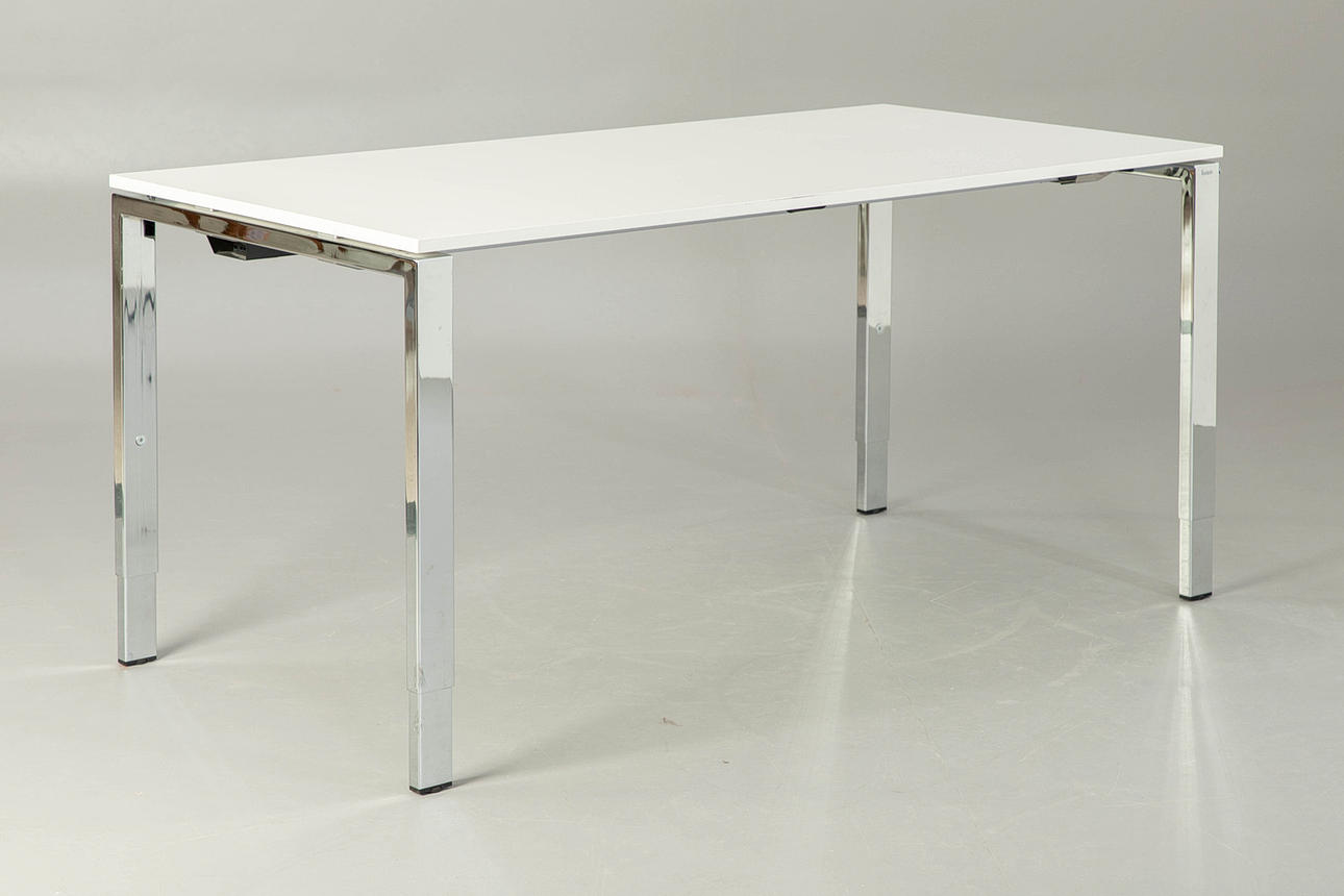 Höhenverstellbarer Schreibtisch, verchromt, BxHxT: 160x61-75x80 cm, Bürostuhl Markus, höhenverstellbar, Kunstleder, HxSH: 130-140x45-55 cm. Bezeichnet.
