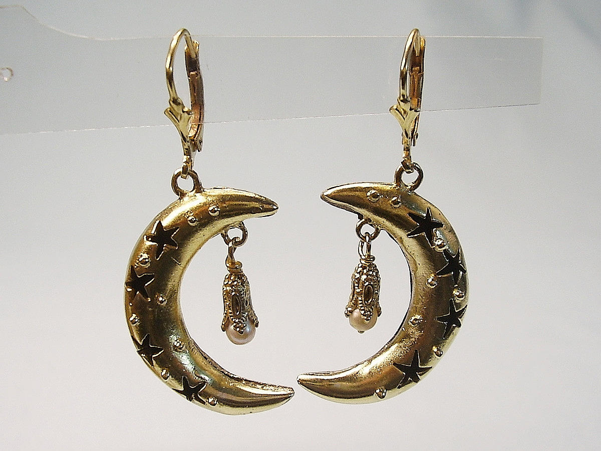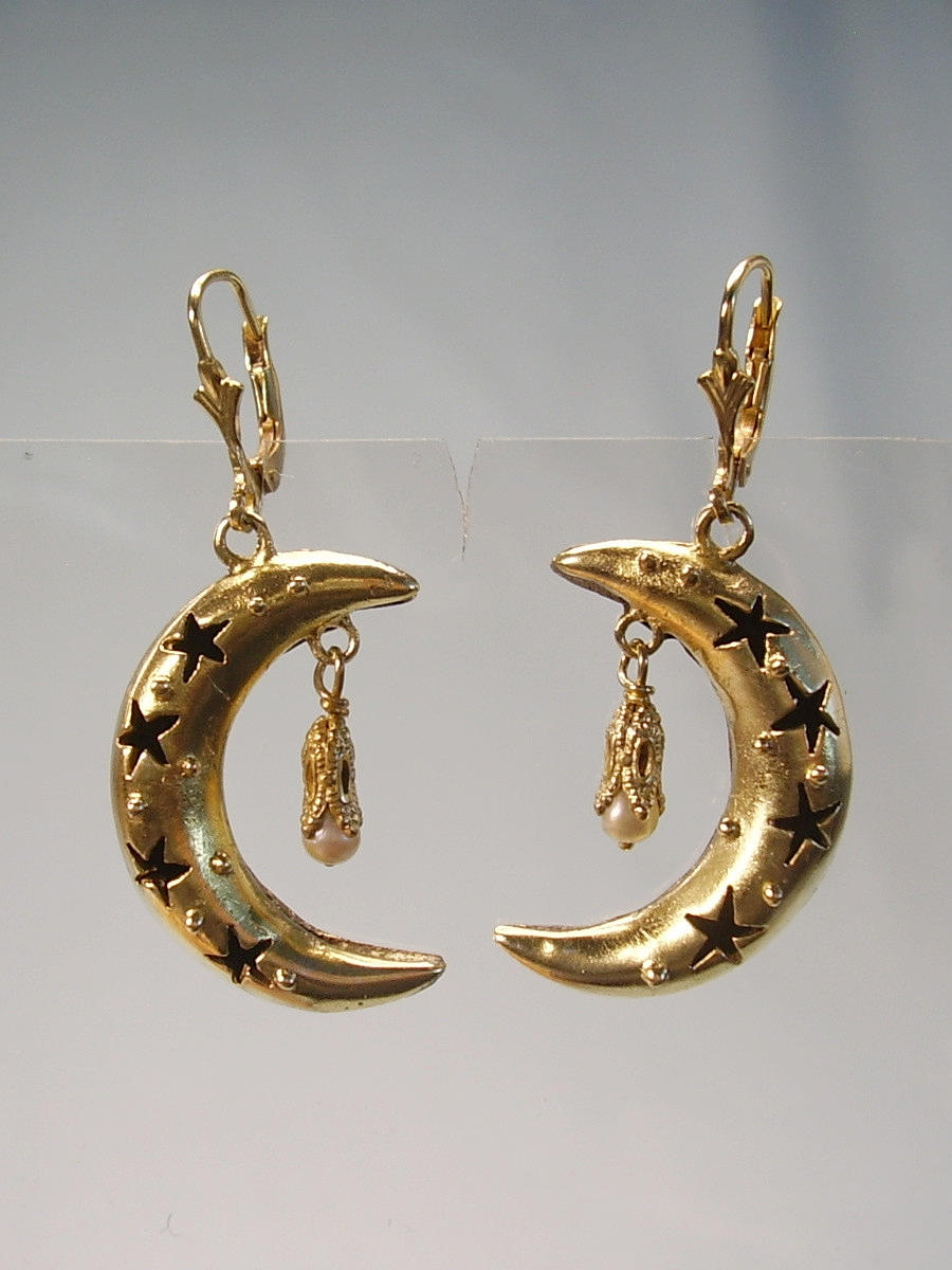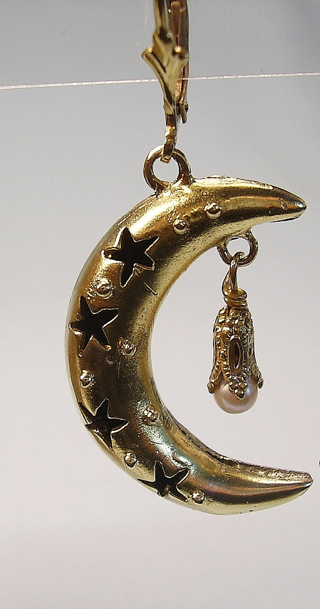 Mit Sternenmuster verzierte Halbmonde sowie weißen Fauxperlen sind beweglich abgehängt.