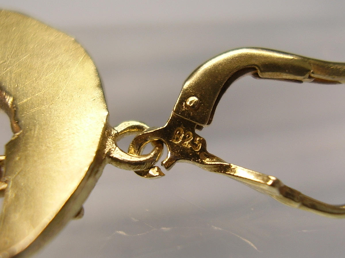 Extravagante antike Ohrringe in Silber 925 gearbeitet und komplett in 14 Karat Gelbgold vergoldet.