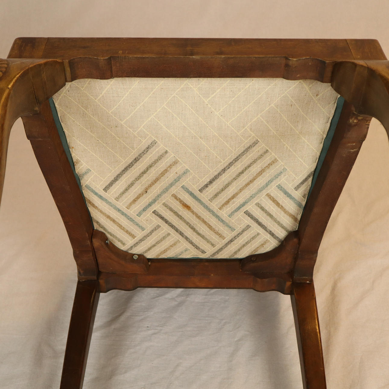 Nussbaum, Stoffbespannung mit Nieten an der Sitzfläche und teils an der Rückenlehne, H: Rückenlehne/Sitz: ca.95/50cm.