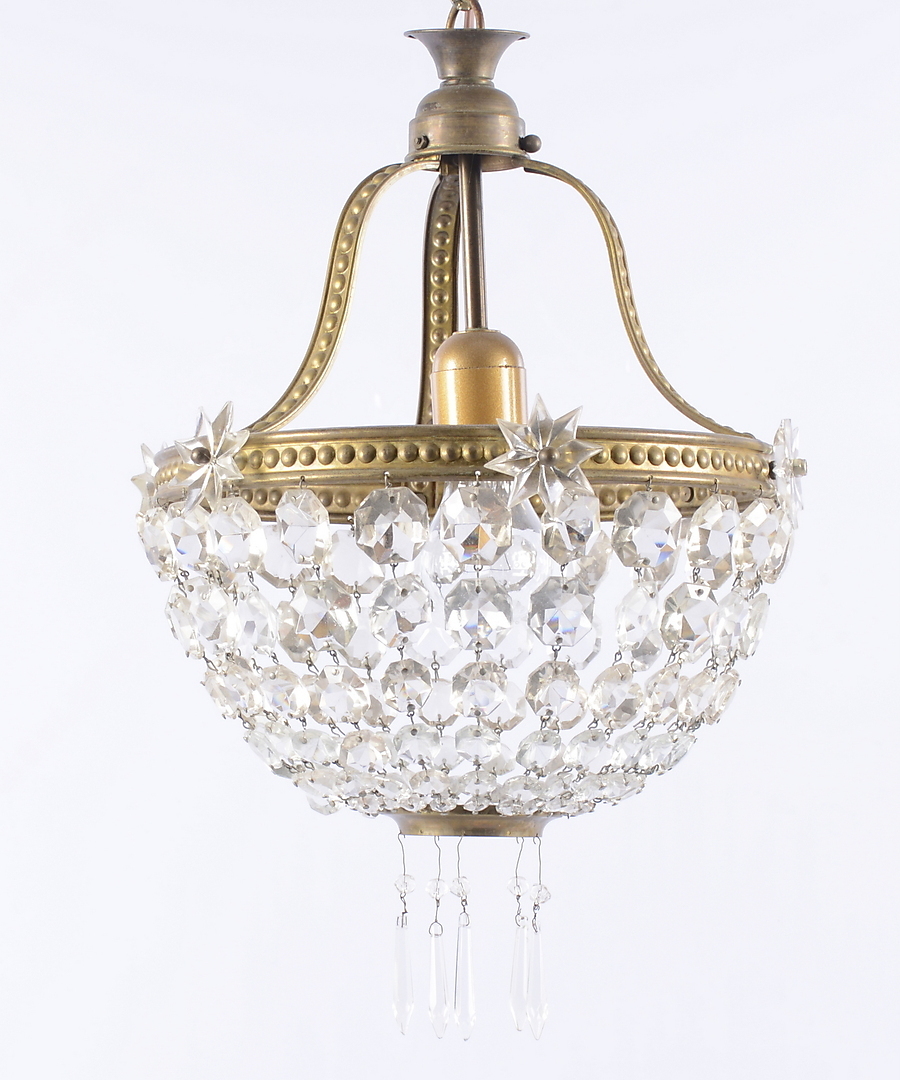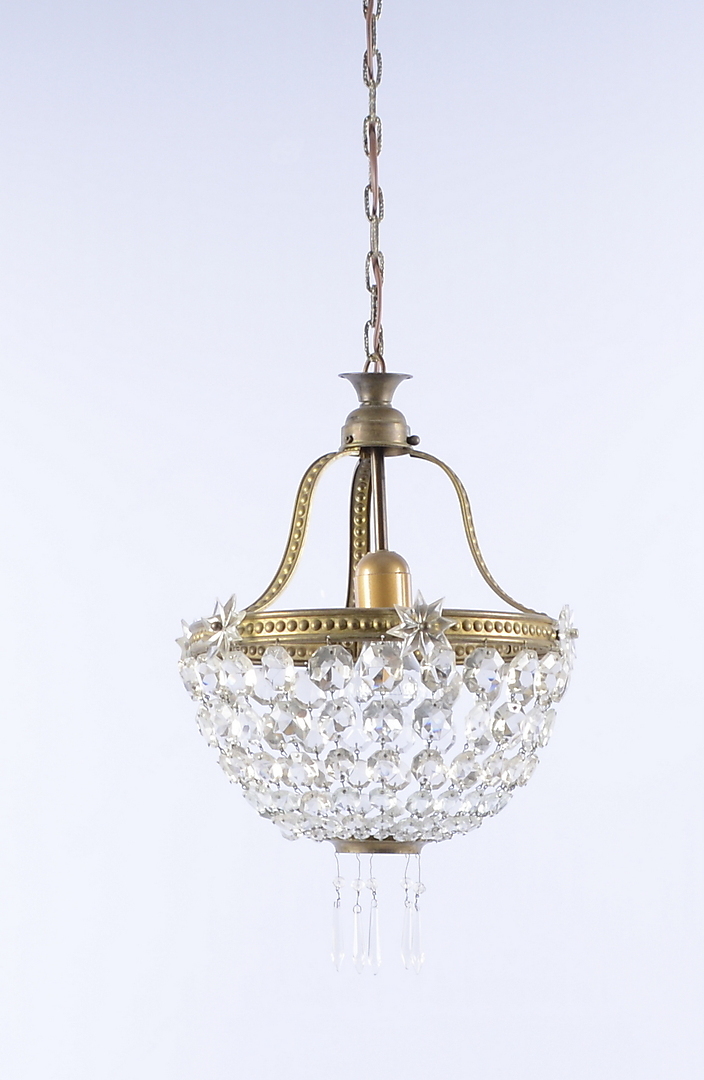 218590. DECKENLEUCHTE, Glas und Kristall.