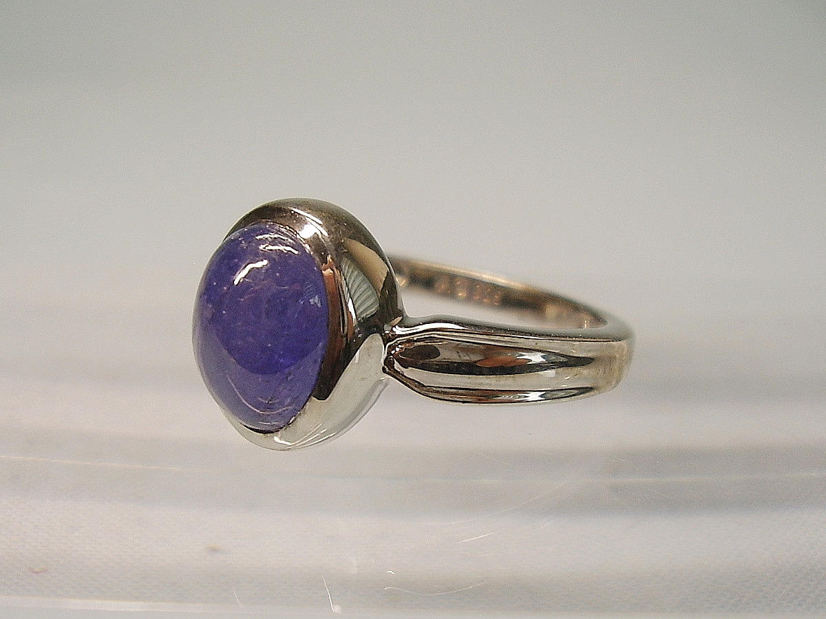 Der Ring ist in Silber 925 gearbeitet und punziert, dazu trägt er das Signet von Harry Ivens, USA. Der Ringkopf ist besetzt mit einem ovalen Tansanit-Cabochon von ca. 3,4 ct.