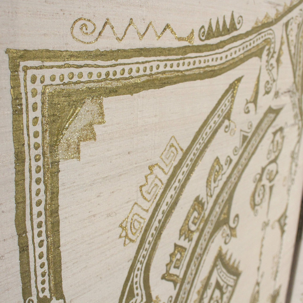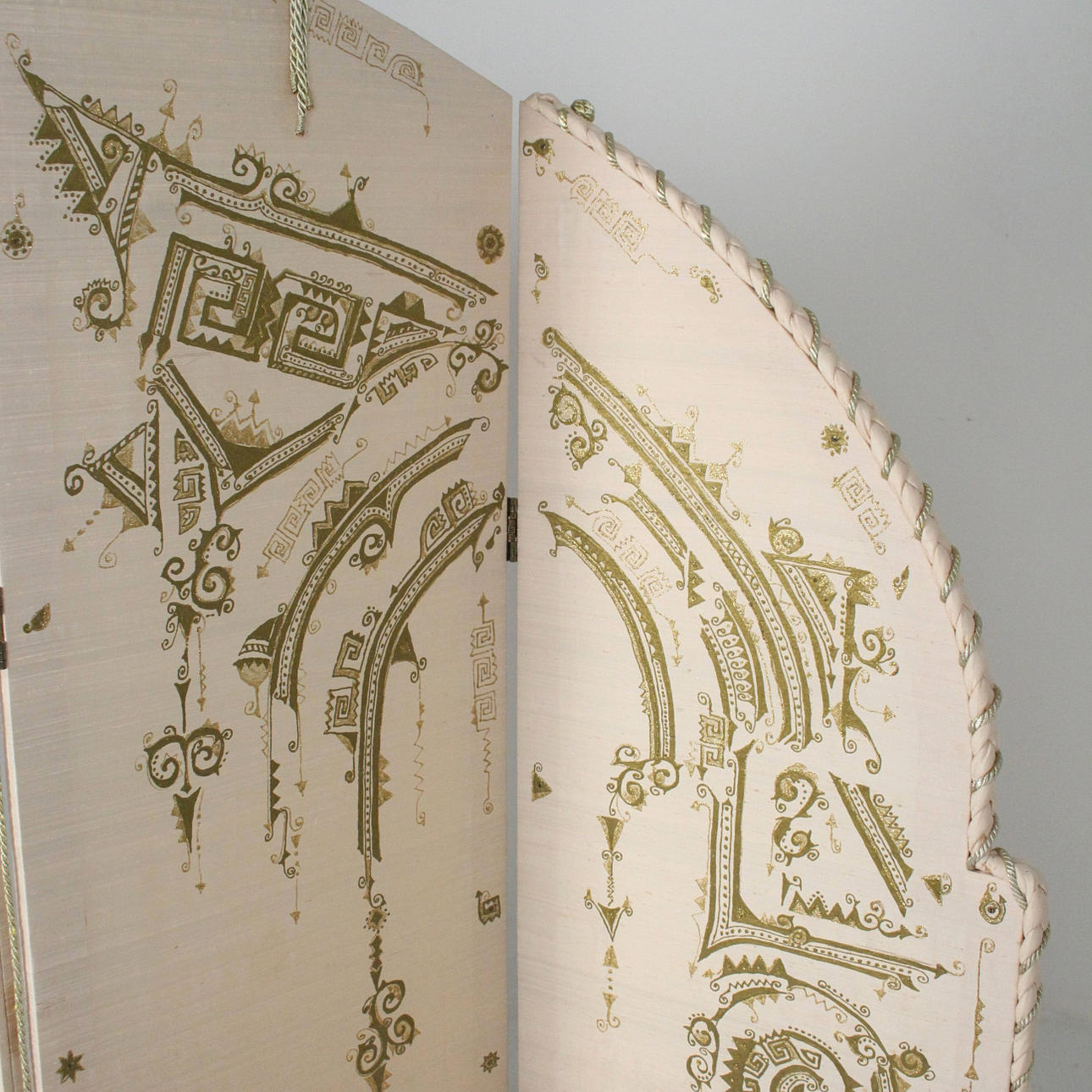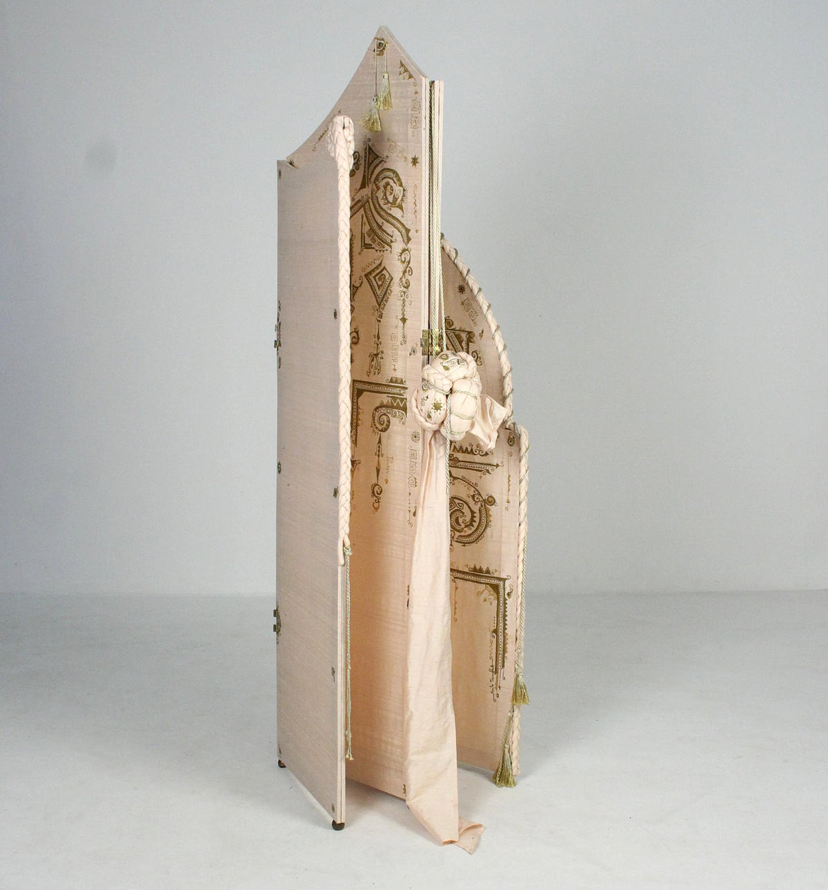 Material: Holz, Messing, Seide golden bemalt und Posamenten