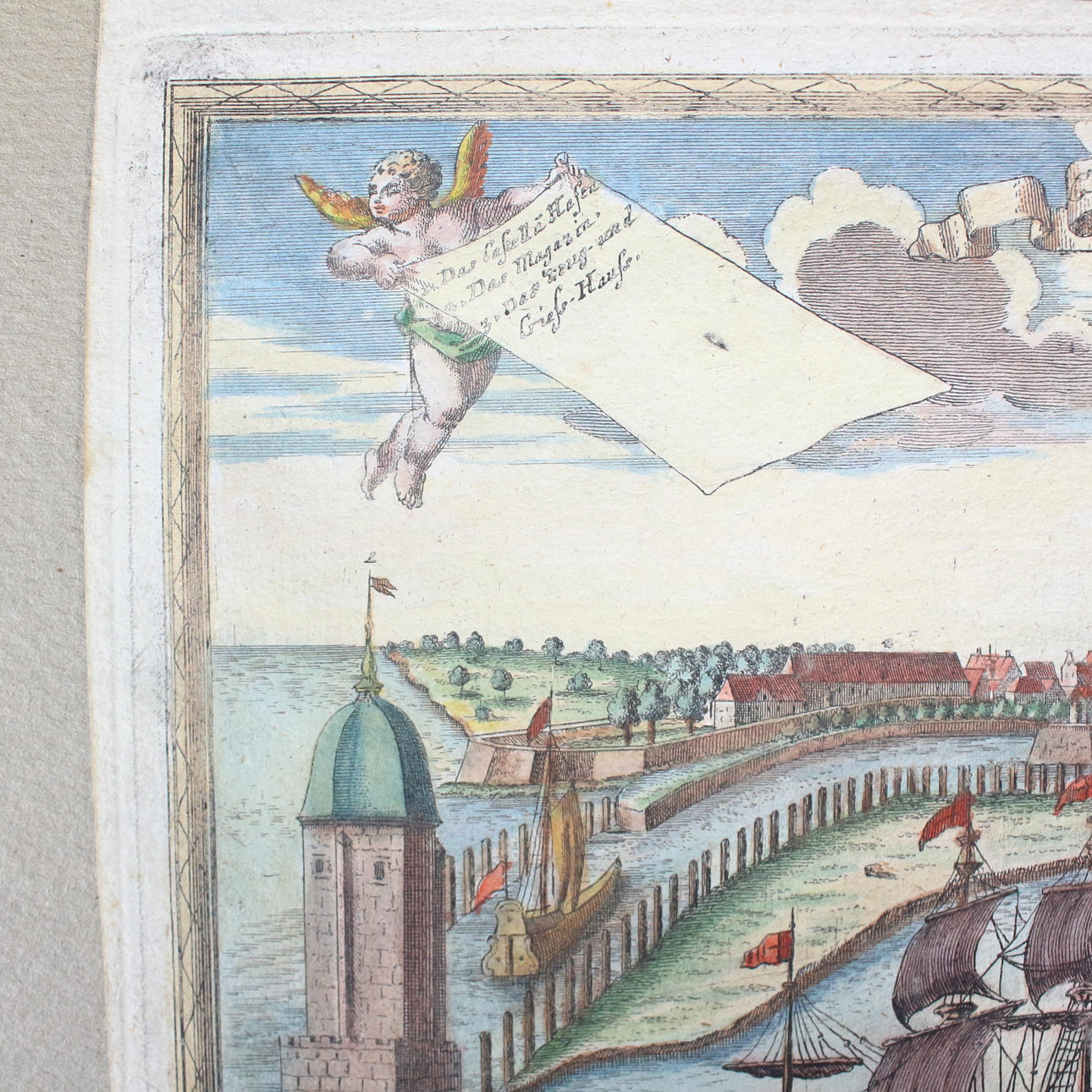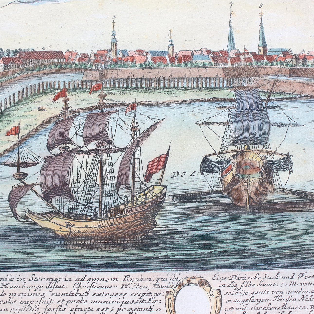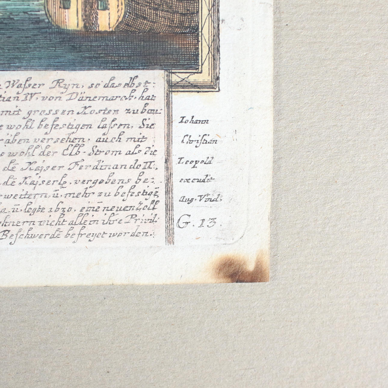 Kupferstich, koloriert, 'Glückstadt', Bildmaß: 22 x 30 cm, Passepartout-Maß: 33 x 40 cm.