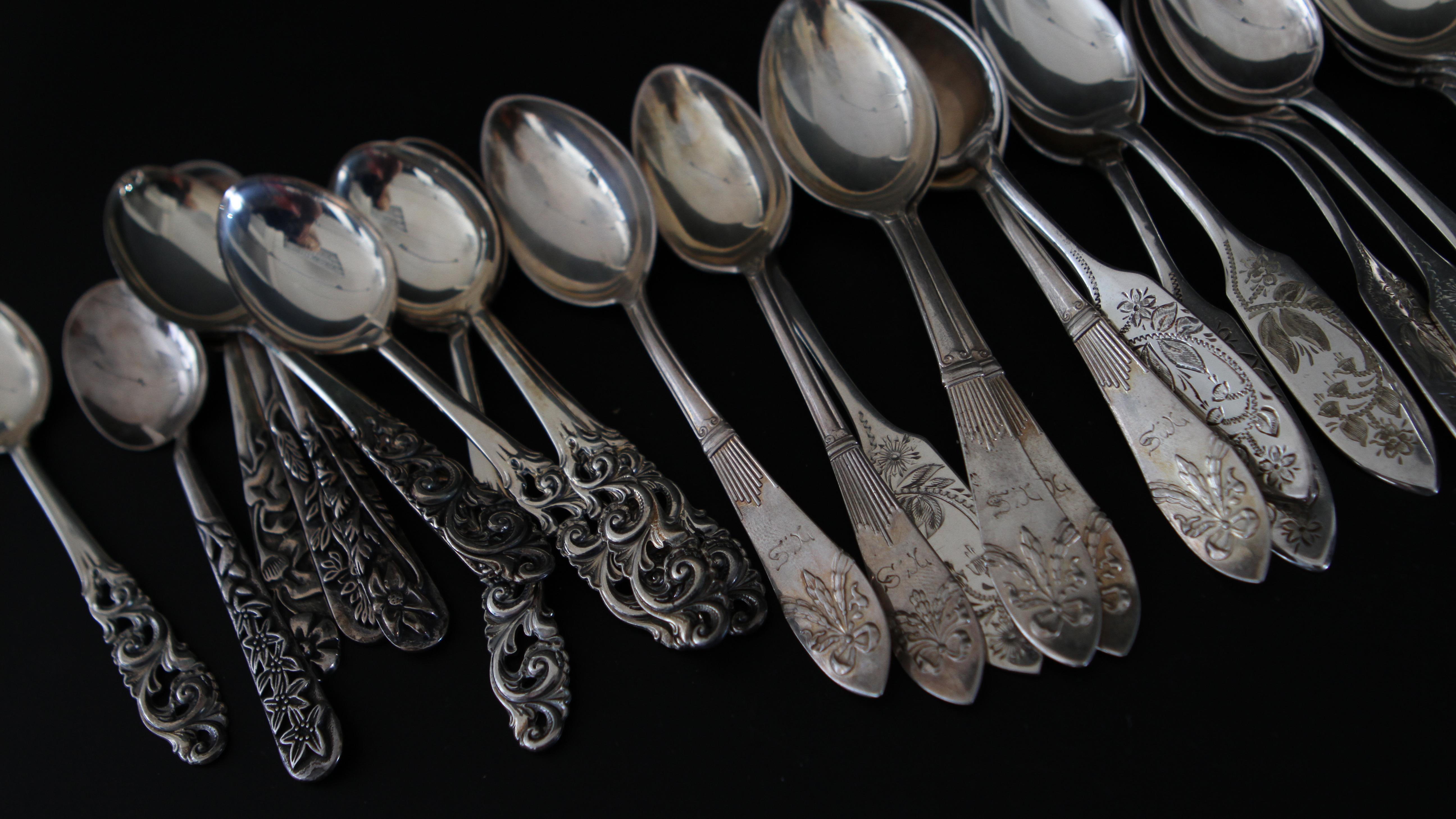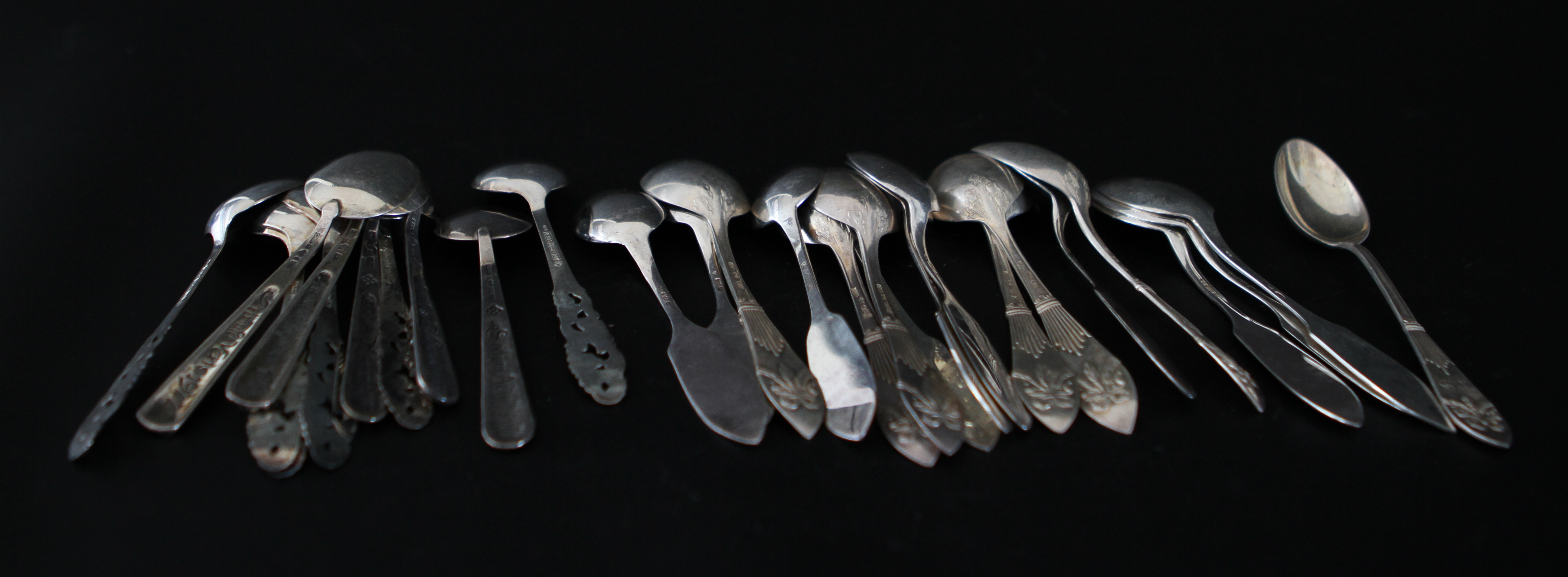 21992. SILBER, 28 Teile, Kaffeelöffel, ca. 370 Gramm.