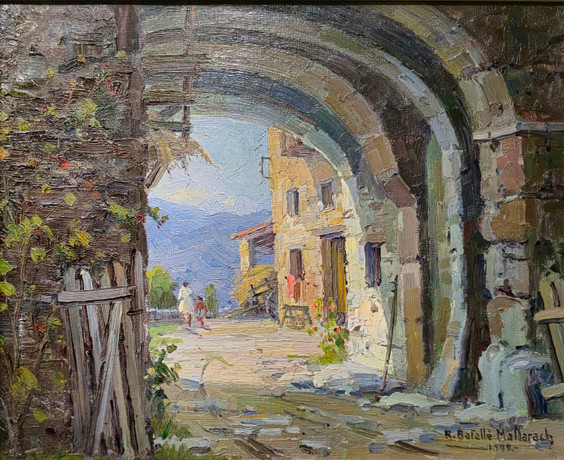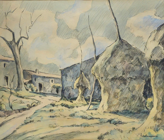 MARIANNE WENKLER. Aquarell, Hauseingang, monogrammiert.