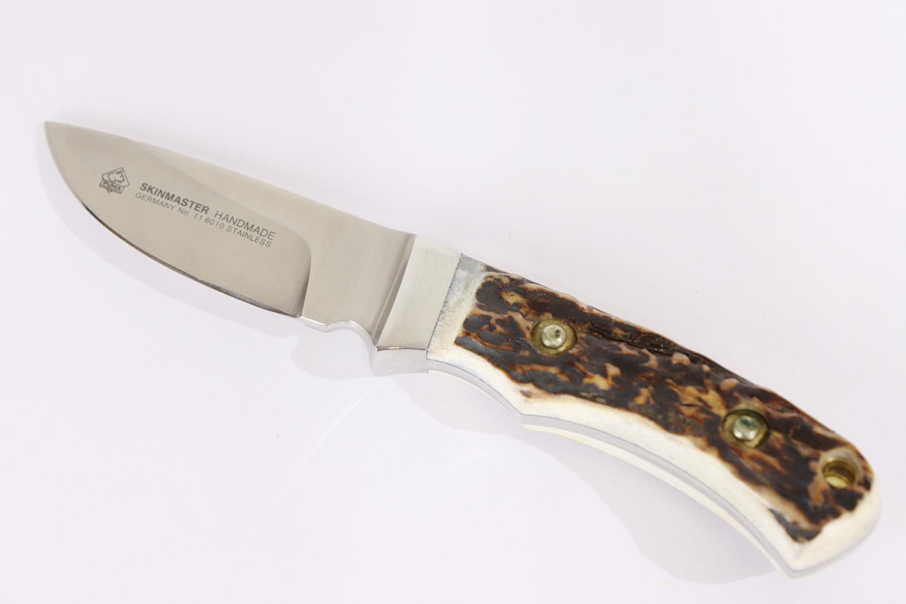 Vollzange, Gesamtlänge ca. 20,5 cm, Klingenlänge ca. 10 cm, Geweihgriff, inkl. Holzschatulle, Modellnummer 11 6010. Inklusive Lederscheide.