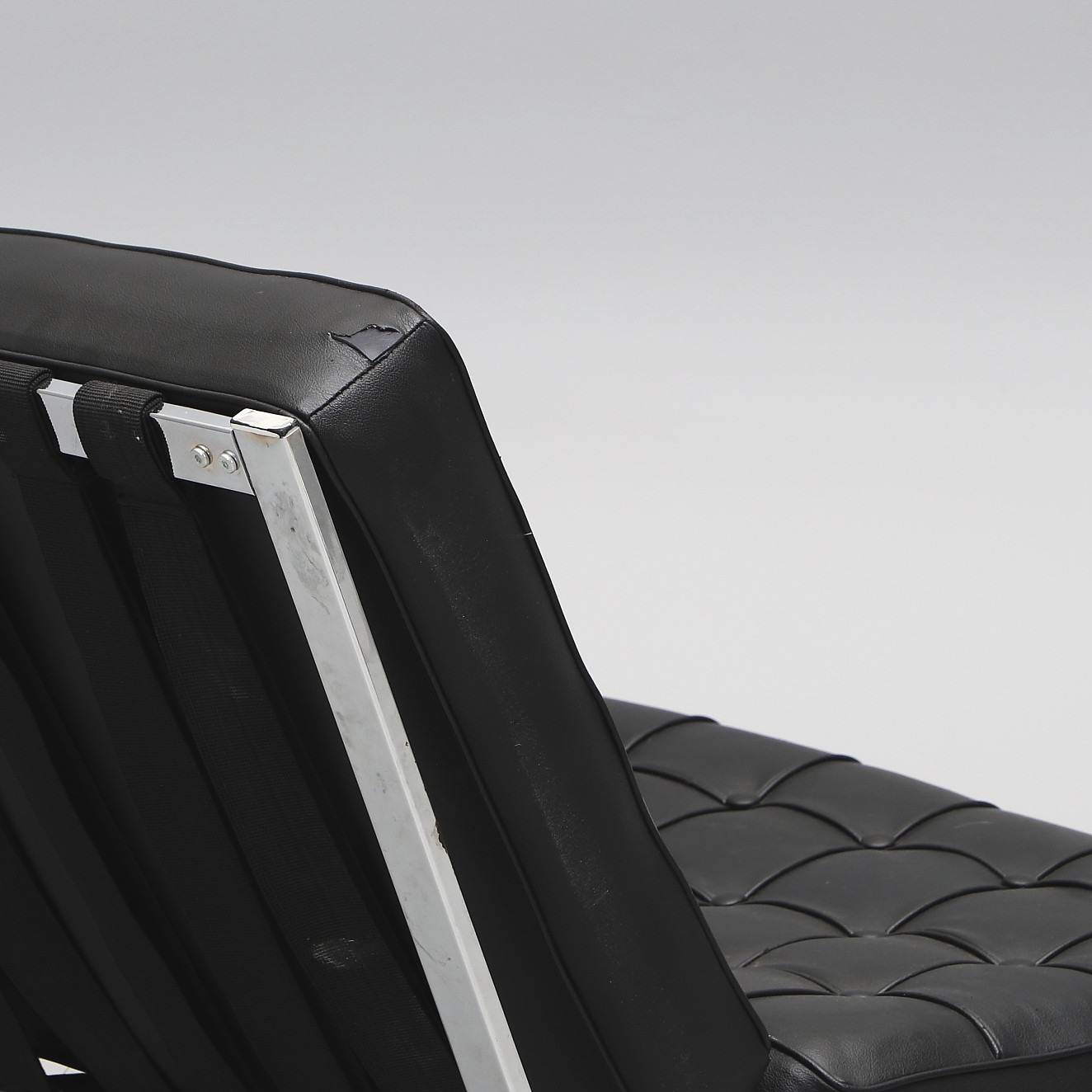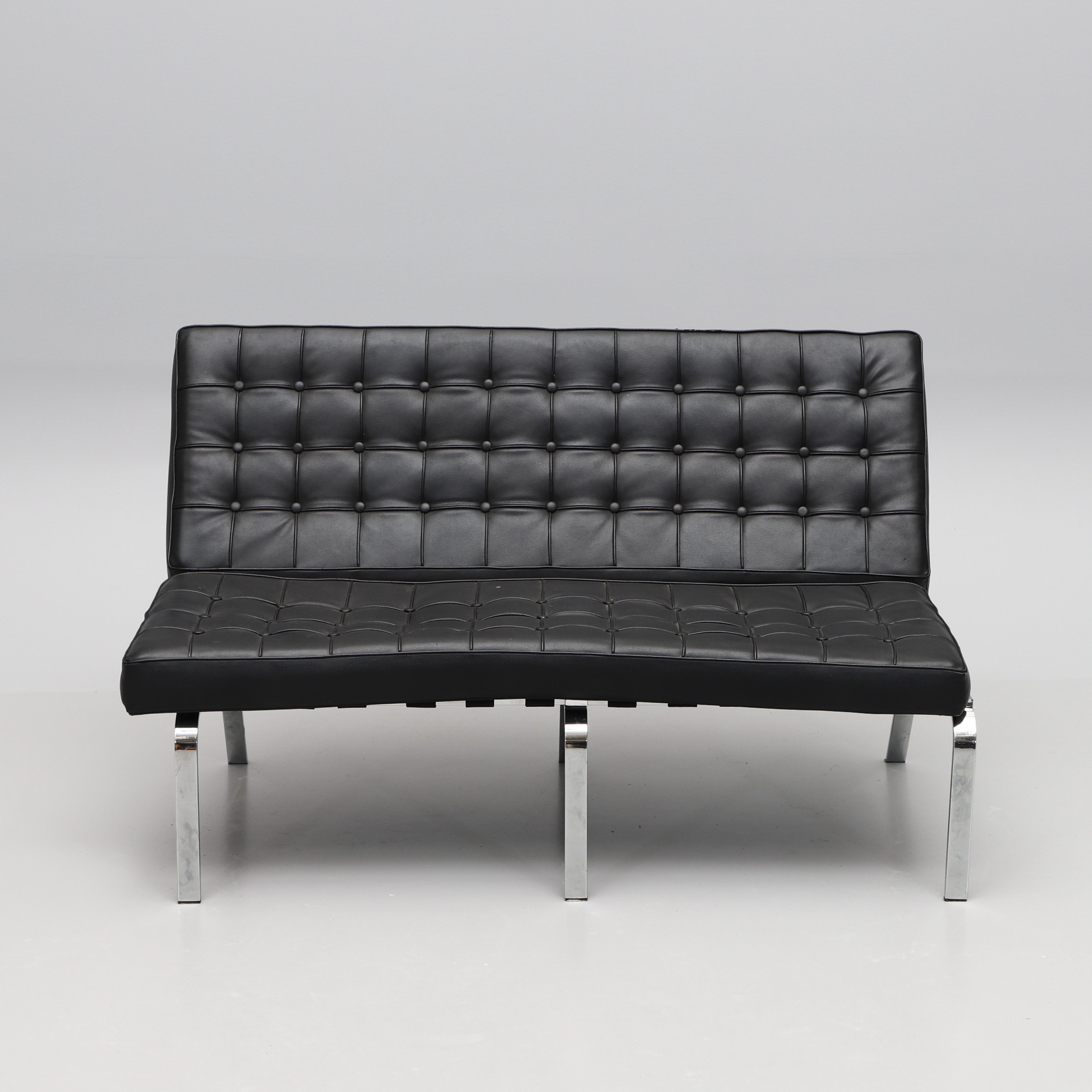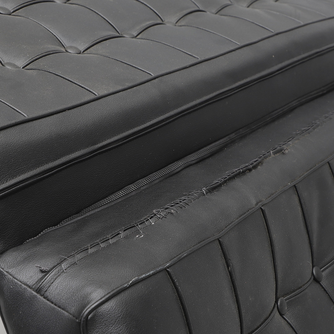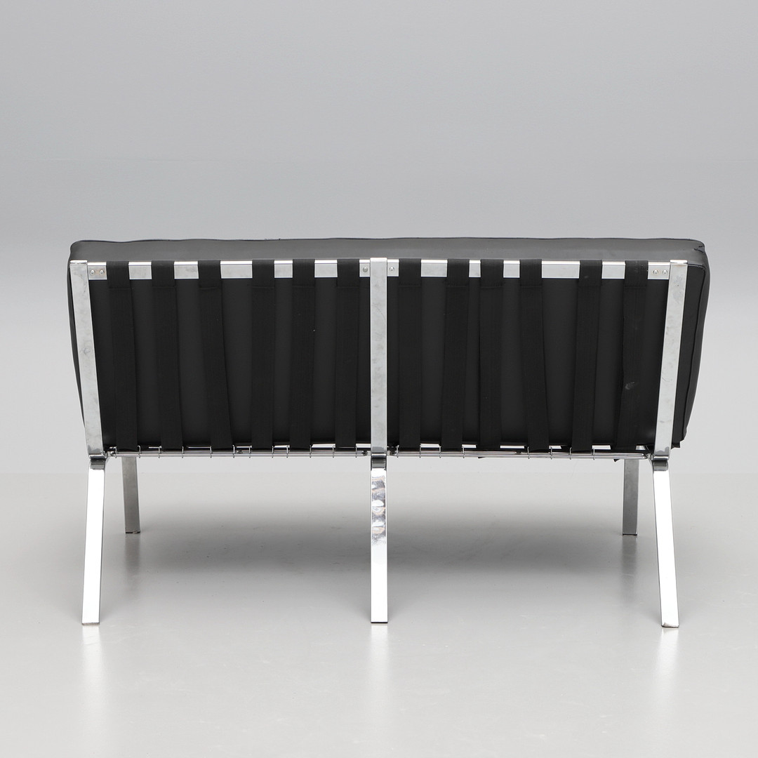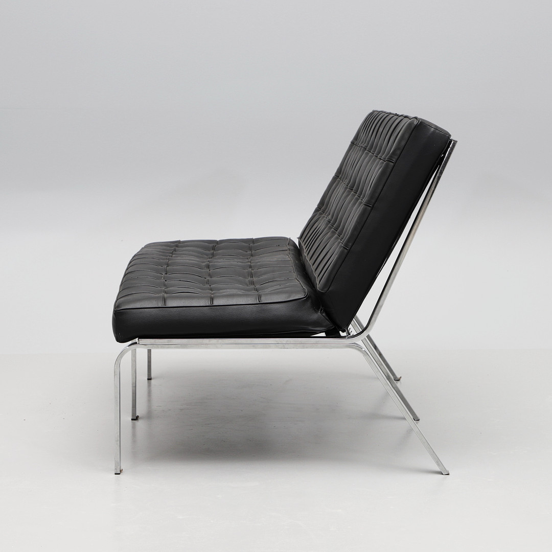 2219154. SOFA, Aluminium und schwarzes Leder.