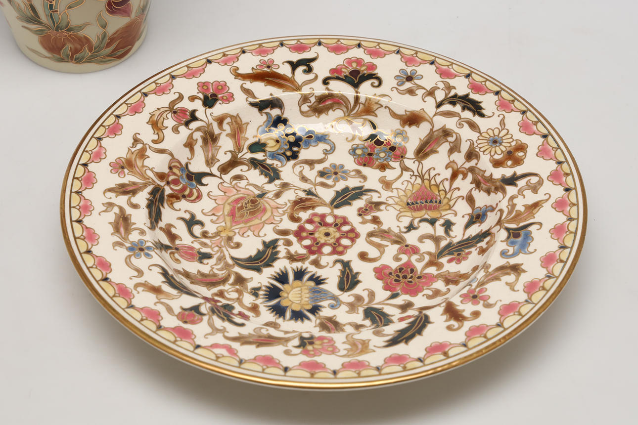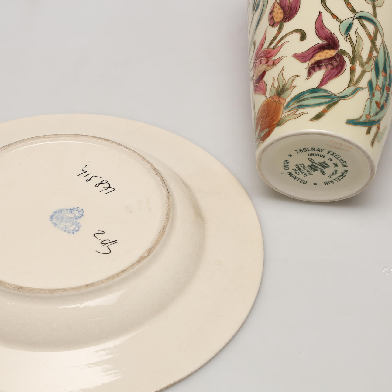 2219292. ZSOLNAY, Ungarn, Vase und Schale, Jugendstil.