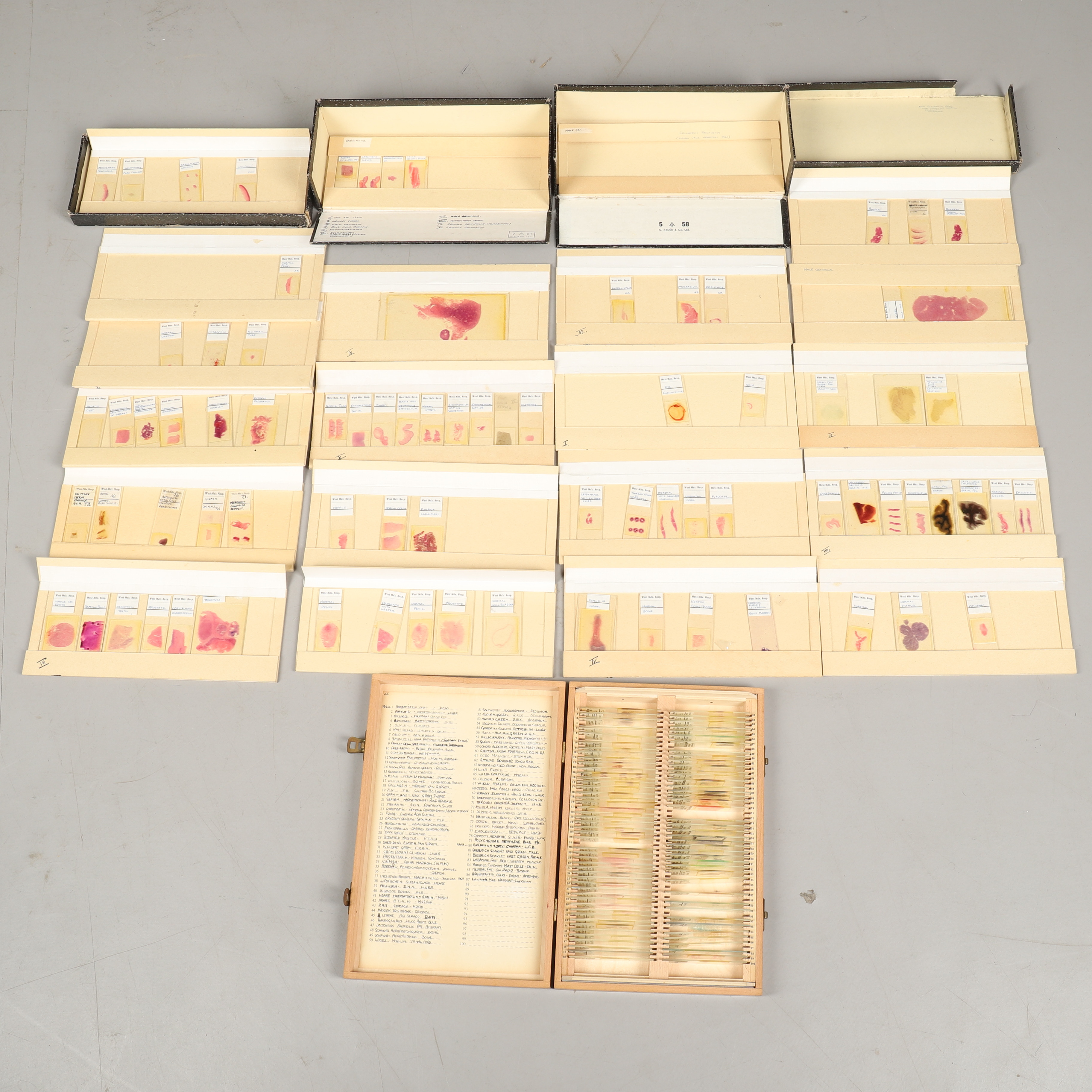 2222739. EINE SAMMLUNG VON GLASMIKROSKOP-STUDIENOBJEKTEN.