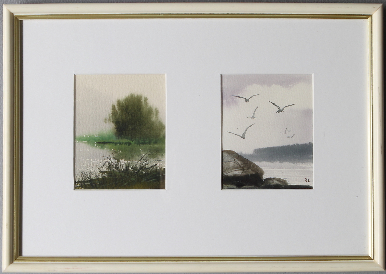 222846. OIDENTIFIERAD KONSTNÄR. 2 Stück, Aquarell, monogrammiert.