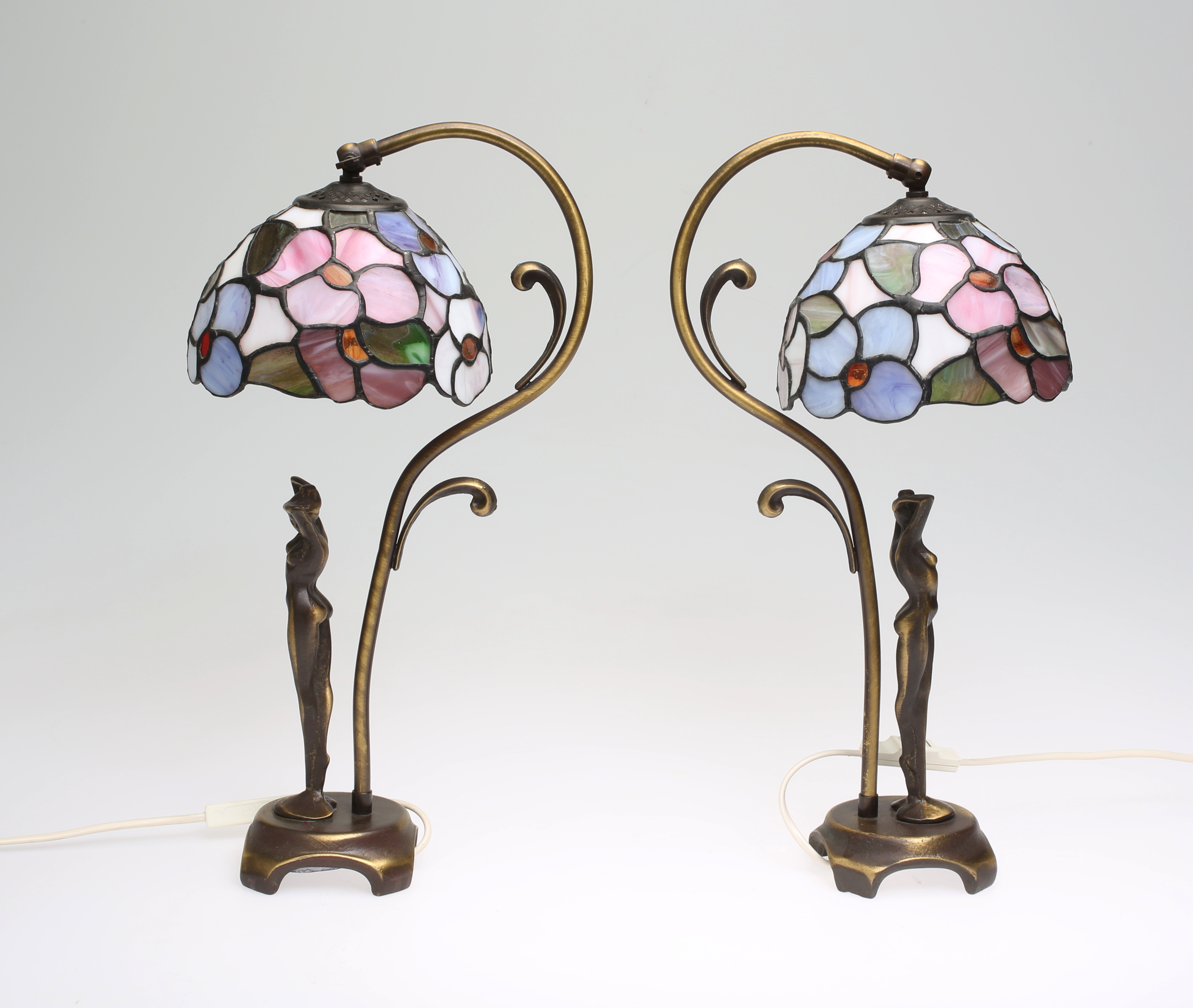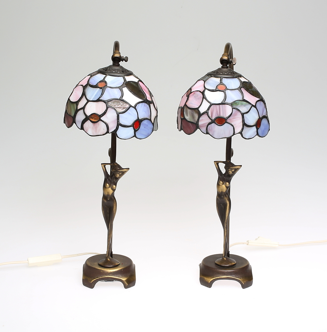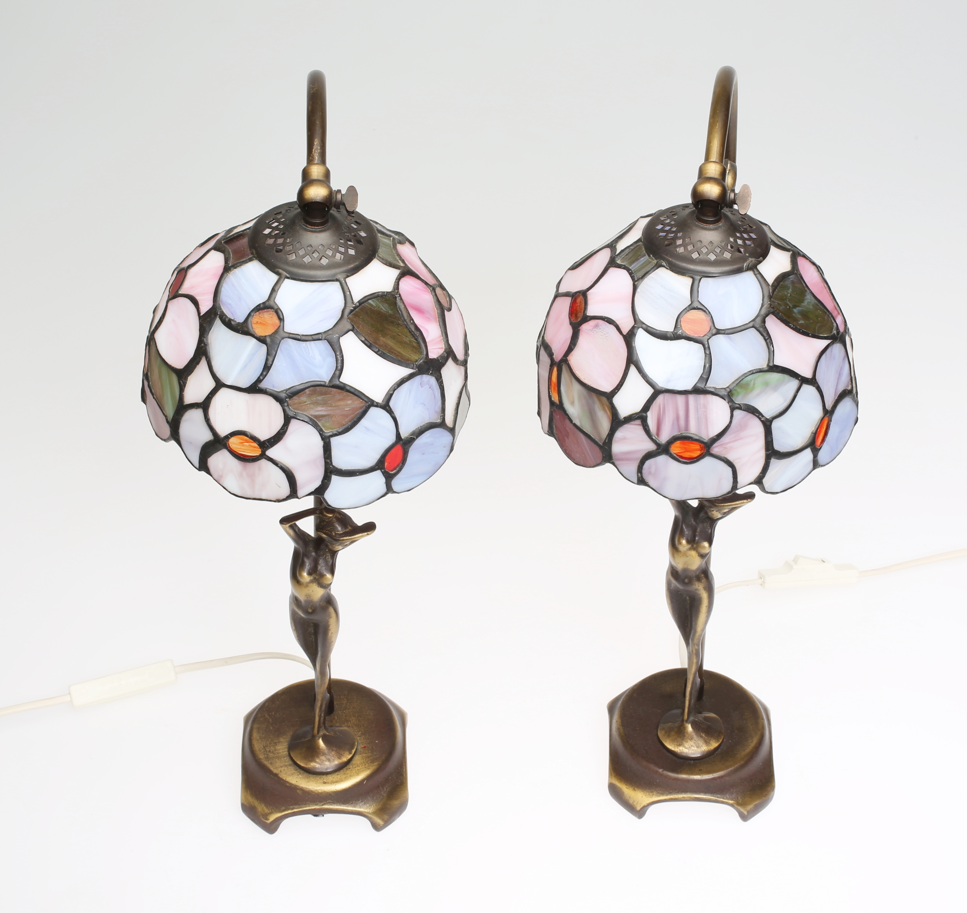223063. TISCHLAMPEN, 1 Paar, "Tiffany-Modell", Lycktan.