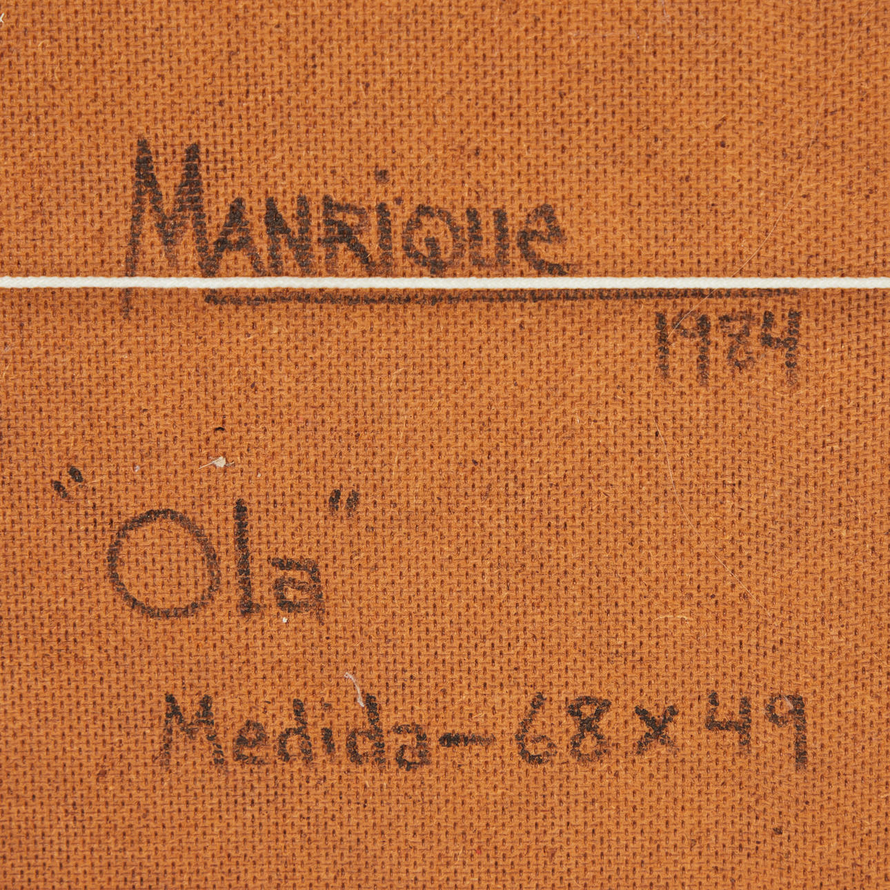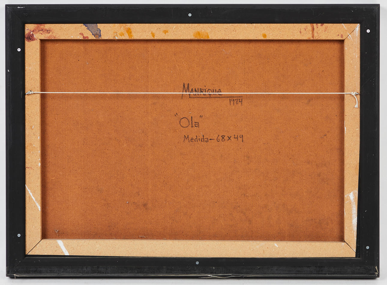 César Manrique (1919-1992), Gemälde, 'Ola', Mischtechnik auf Tafel, 1984. Abstrakte Komposition mit Farbfeldern in Rot, Weiß und Blau, rückseitig bezeichnet, 49x68cm (52x71cm).