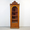 Bücherschrank geschnitten und gedrechselter Dekor, mit verglaster Tür, 4 verschiebbaren Einlegeböden und einer Schublade, Höhe inkl. Krone ca. 195 cm, Breite 70 cm, Tiefe 40 cm.