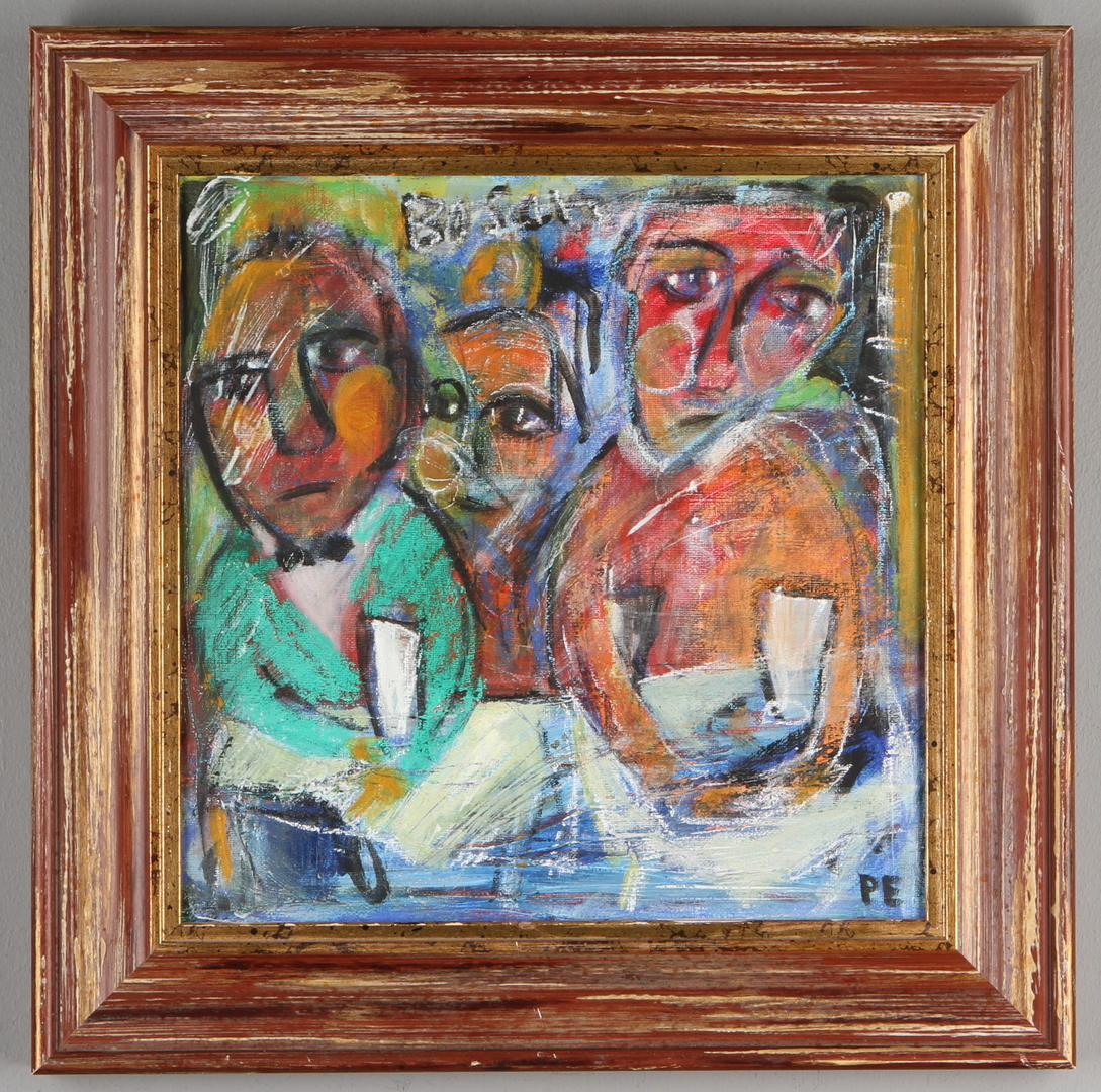 22373. OKÄND KONSTNÄR. Komposition, Mischtechnik, monogrammiert PE.