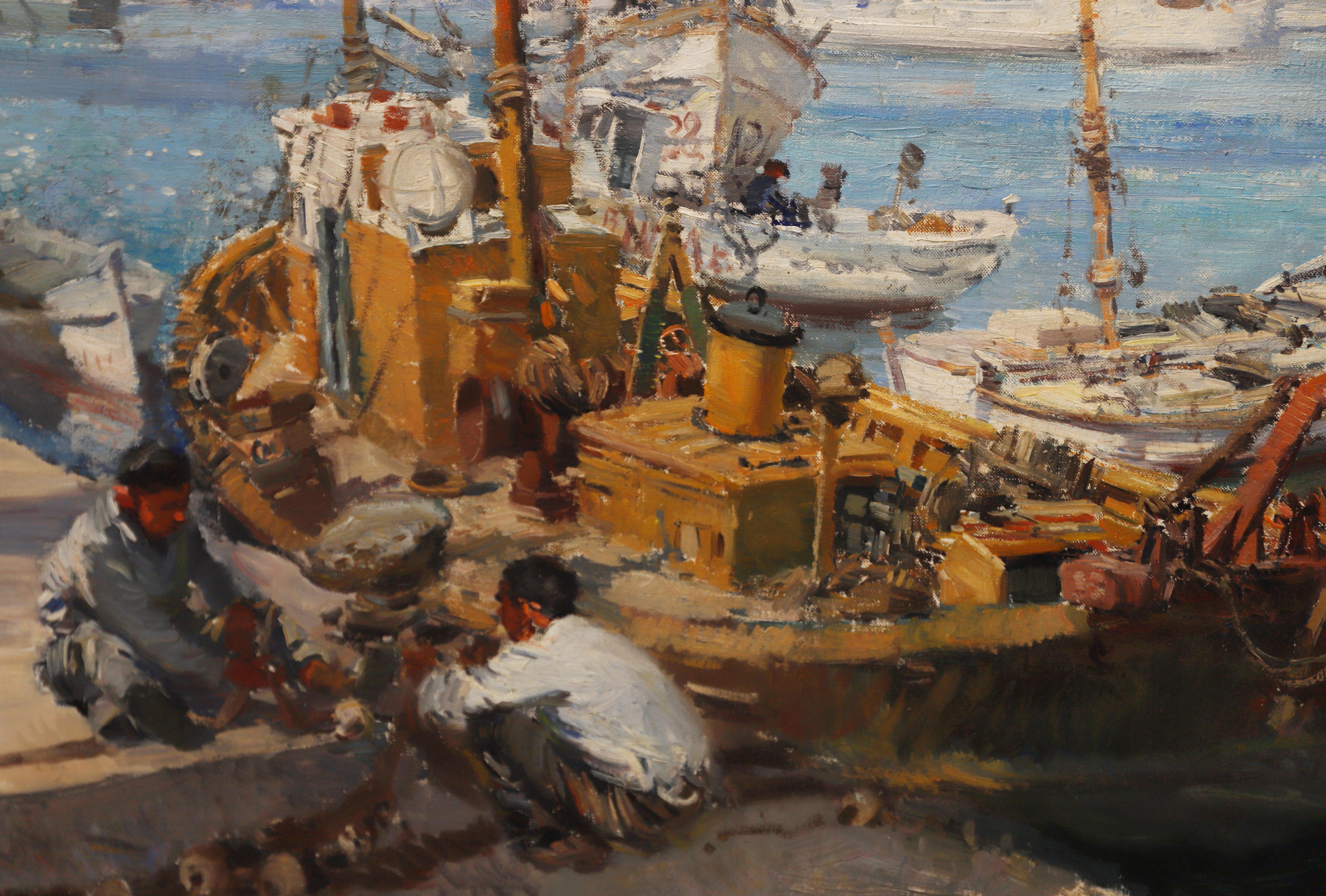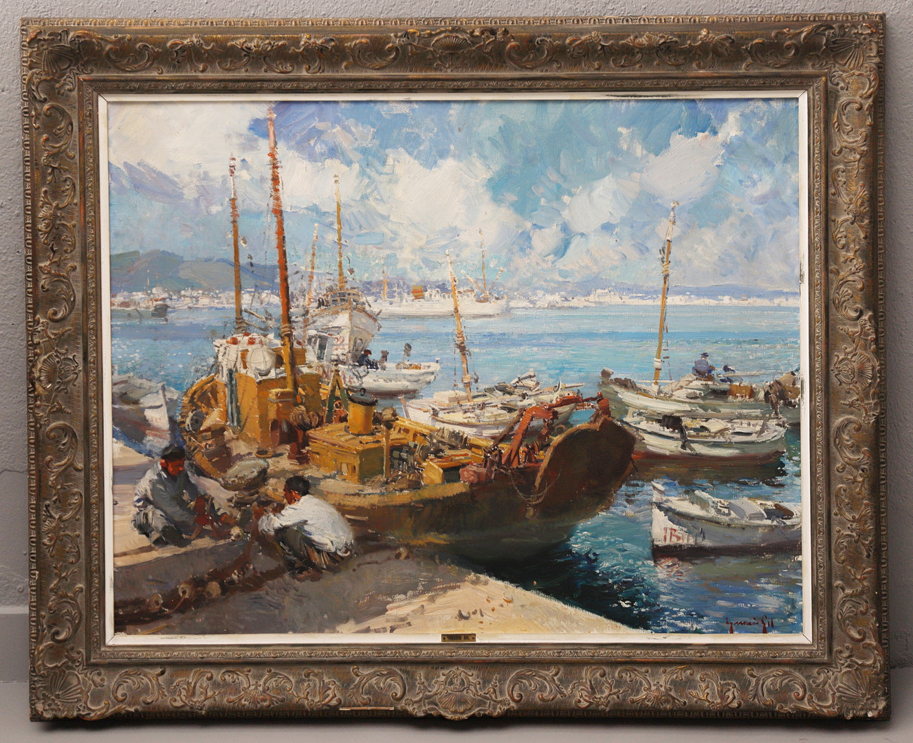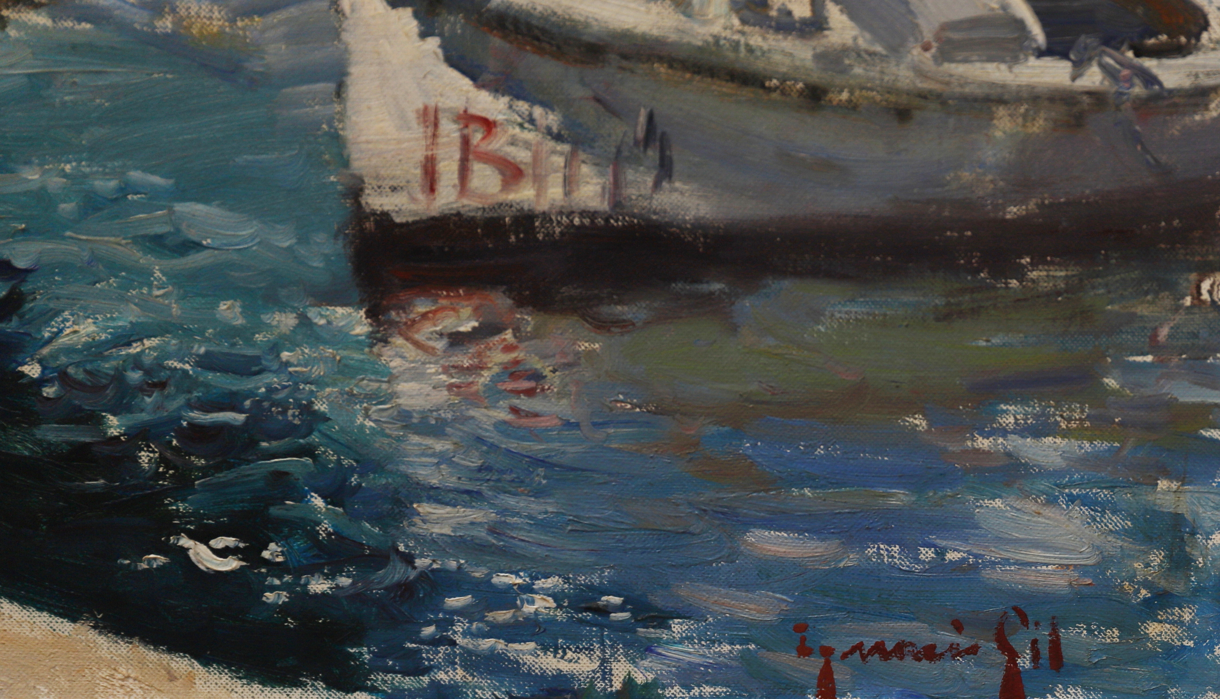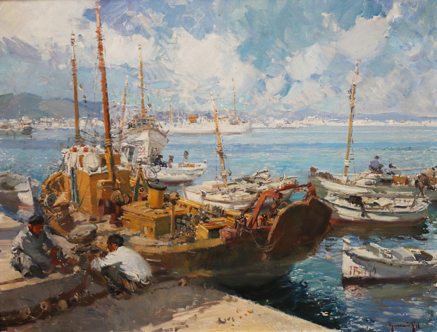 2239857. IGNACIO GIL SALA. FISCHER MIT BOOT. ÖL LEINWAND.