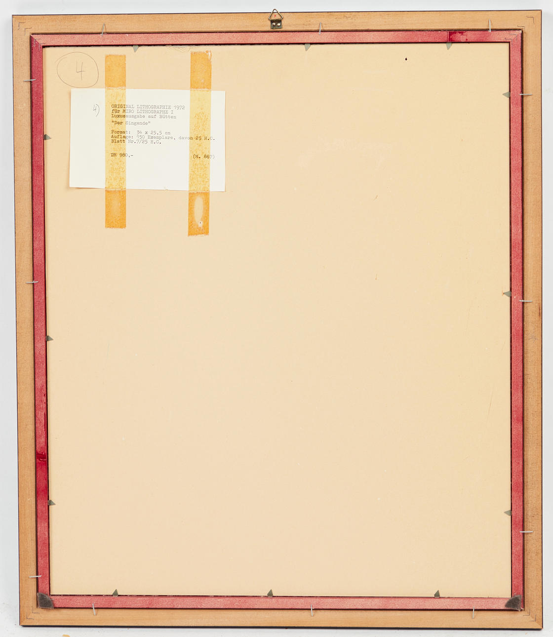 Joan Miró (1893-1983), Farblithografie, 'Der Singende', 1972. Abstrakte polychrome Komposition mit der Darstellung eines Fisches, unten links in Blei als 'H.C.' geschildert und als '7/25' editiert, sowie rückseitig bezeichnet, 33x25,5cm (56x48cm).