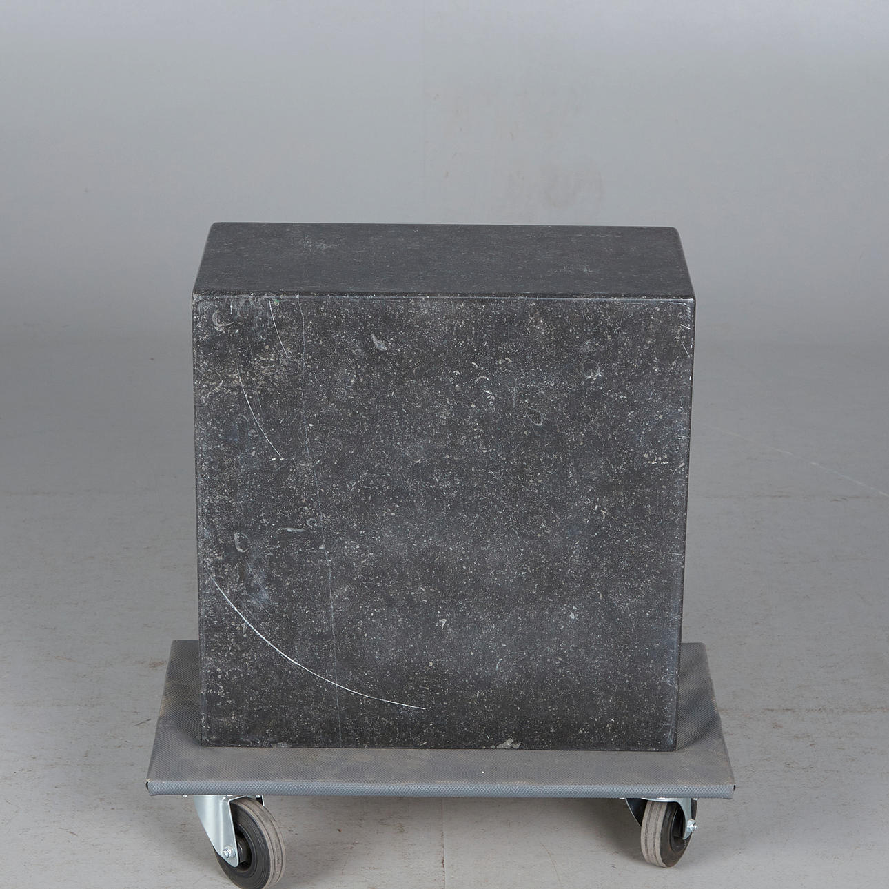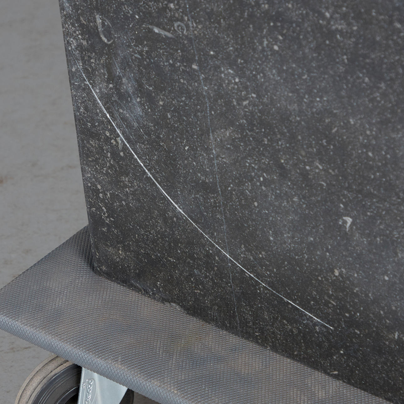 Altersgemäße Reibespuren, partielle Kratzer und Bestoßungen im Marmor.