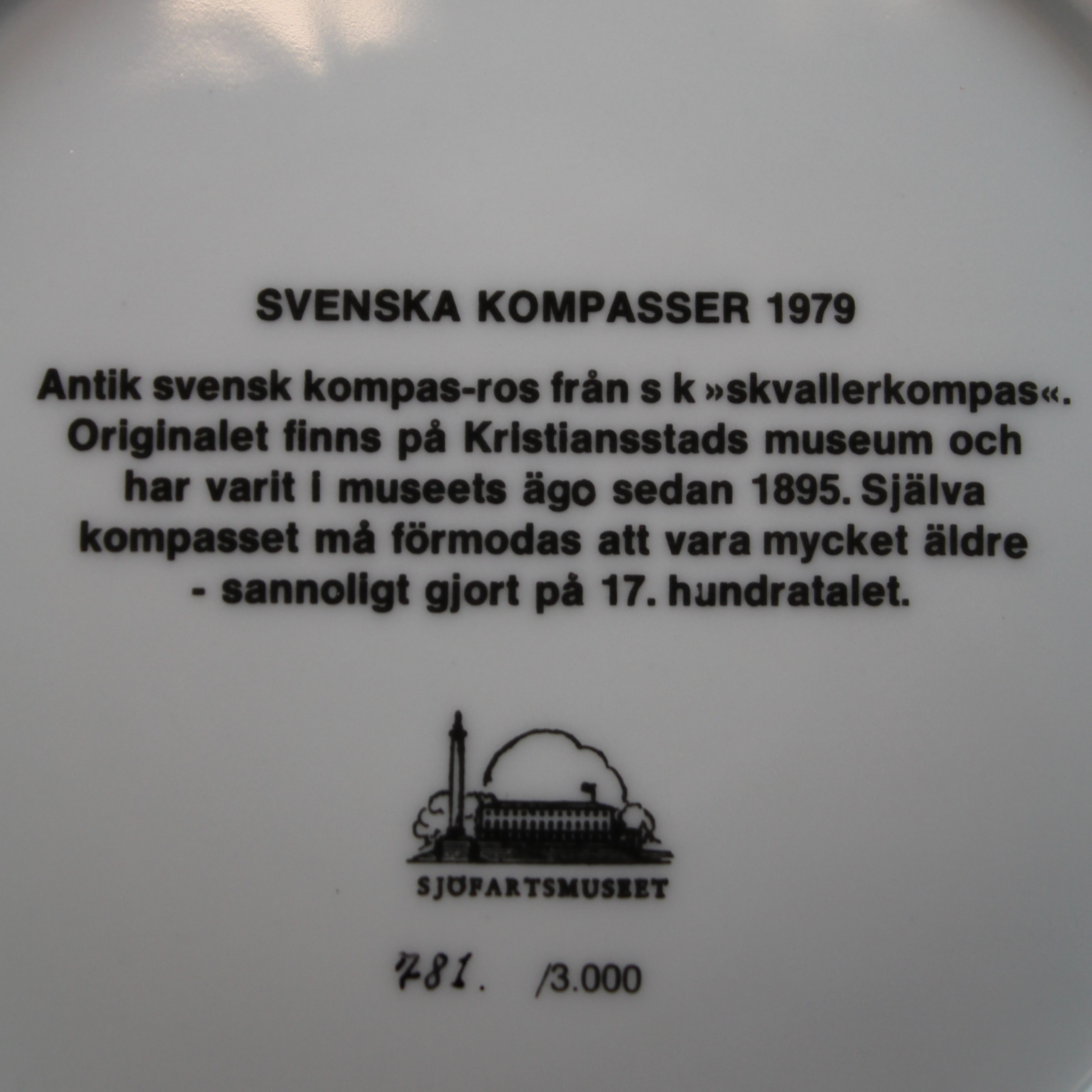 2248614. SAMMLERTELLER, 3 Stück, Schwedischer Kompass.