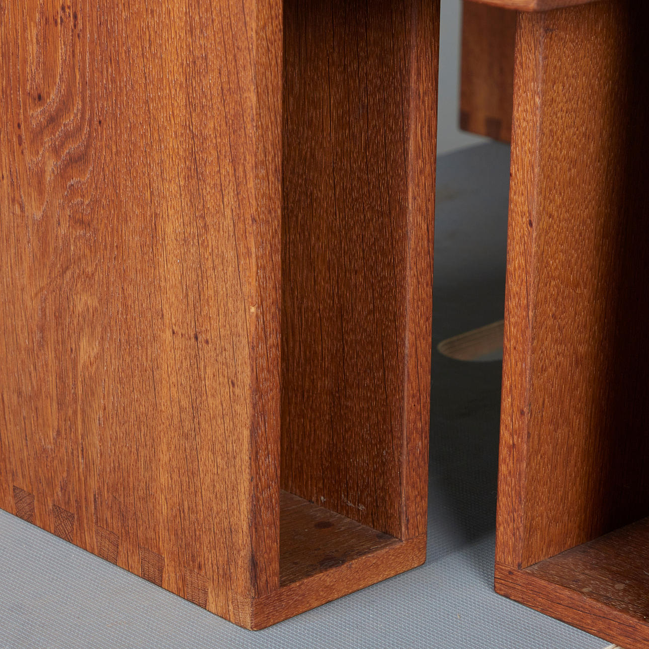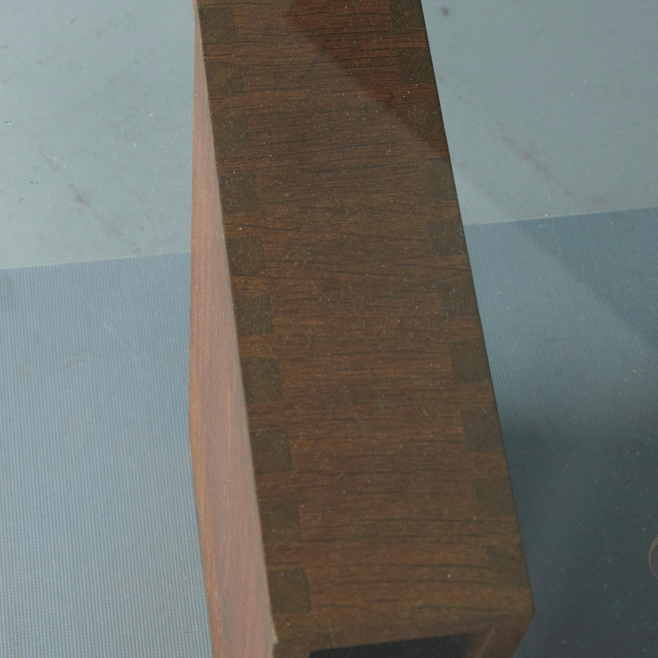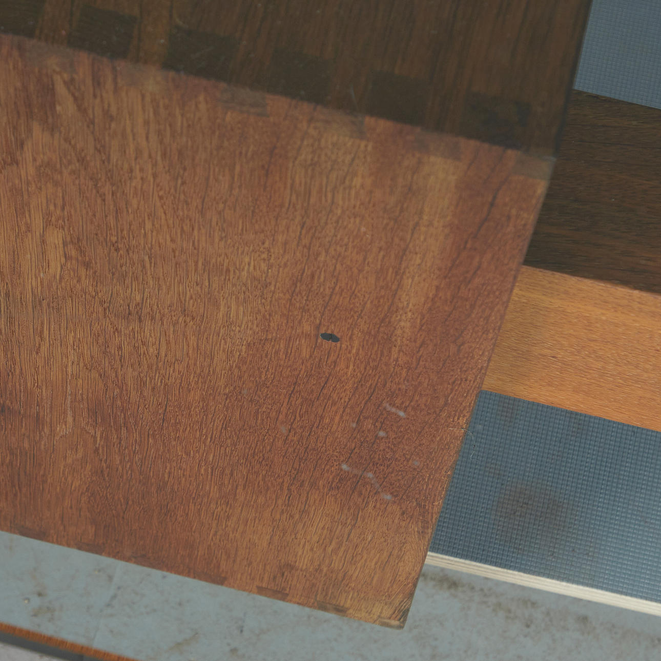 Altersgemäße Gebrauchs- und Reibespuren, partielle Kratzer im Glas und Holz.
