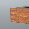 Tisch / Couchtisch, Holz, Glas. Couchtisch mit einem Untergestell aus dunkelbraunem Holz und einer lose aufliegenden, quadratischen Tischplatte aus dickwandigem Glas, Glasdicke: 2cm, H.55cm, L.115cm, B.115cm.