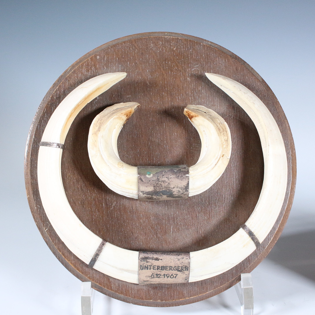 2252707. Jagdtrophäen, Wildschwein-Hauer, 1967.
