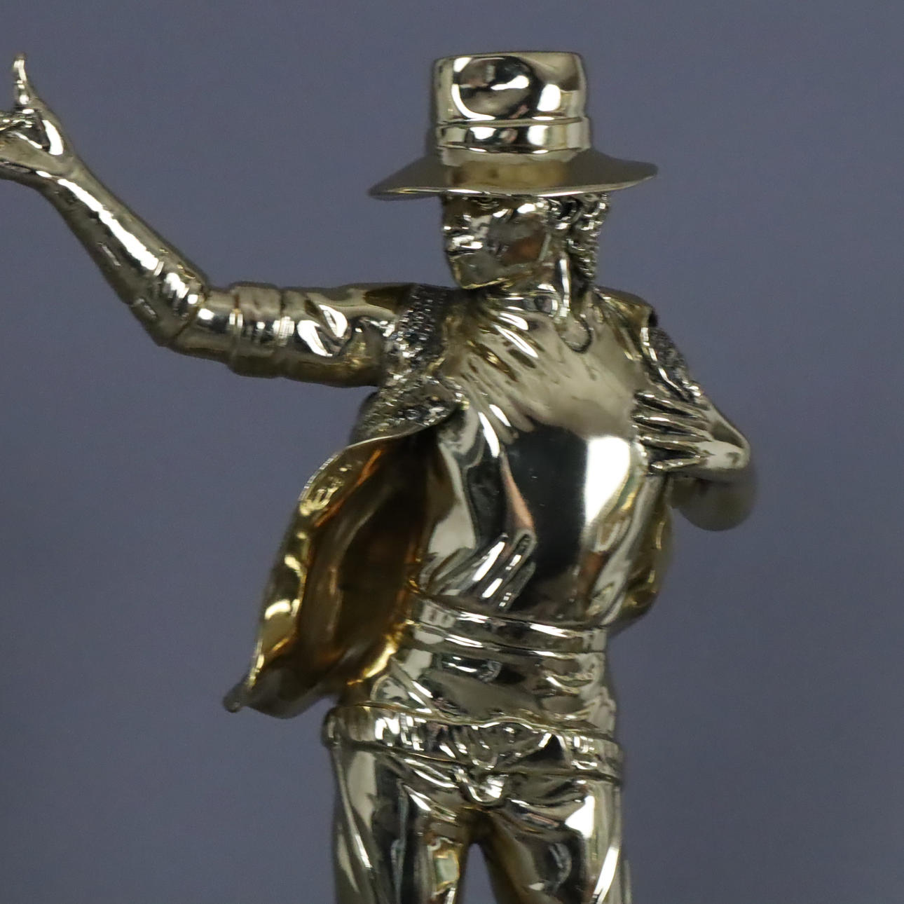 "Michael Jackson", exklusives Design, Messing - Gold Hochglanz poliert, handgeformt, Gewicht: ca. 6.600 Gramm, Höhe: ca. 54 cm, Breite: ca. 37 cm.