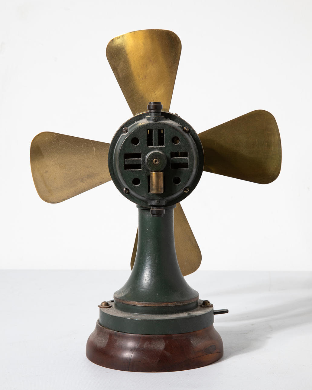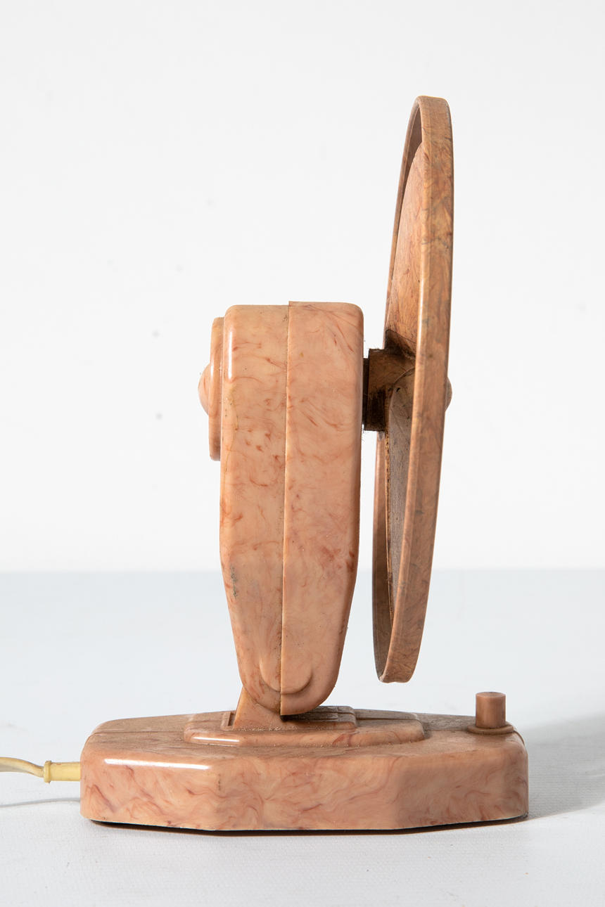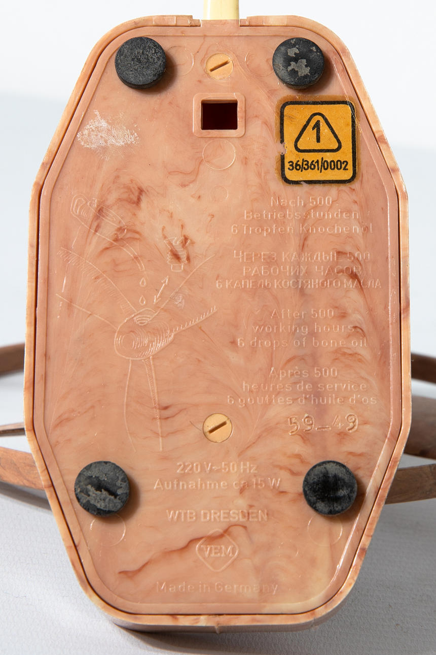 4 Tischventilatoren/ Ventilatoren. Verschiedenen Materialien, u.a. Metall, Messing, partiell lackiert Verschiedene Größen H. 37 cm, 35 cm, 21 cm, 26,5 cm. Teilweise bezeichnet mit Firmenmarken und Modellnummern (VEM WTB Dresden, VDH, Paris mit Stern).