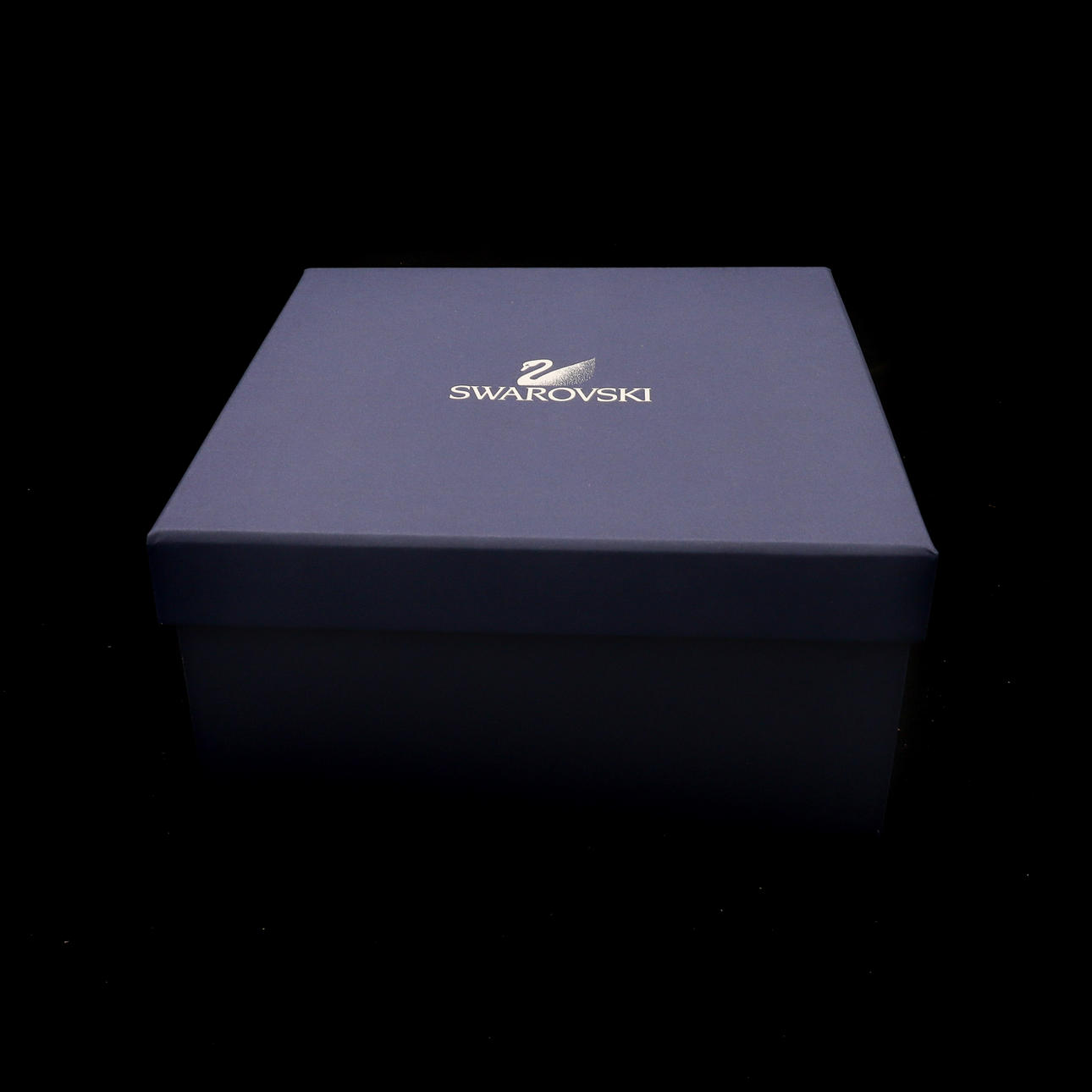 Nr. 889229, der Bilderrahmen mit zwei pfirsichfarbenen und klaren facettierten Kristallherzen an der Seite und zwei floralen Motiven in pfirsichfarbenem und klarem Kristall, mit Zertifikat, 15,5 cm quadratisch in passgenauer Originalverpackung und Umhüllung.