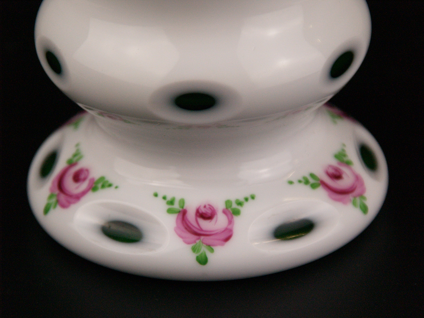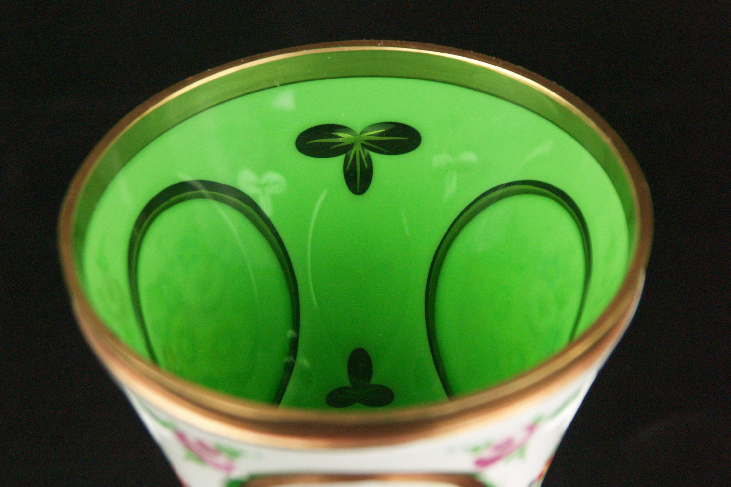 2255804. VASE - BÖHMEN, grünes Glas mit Milchglas-Überfang.