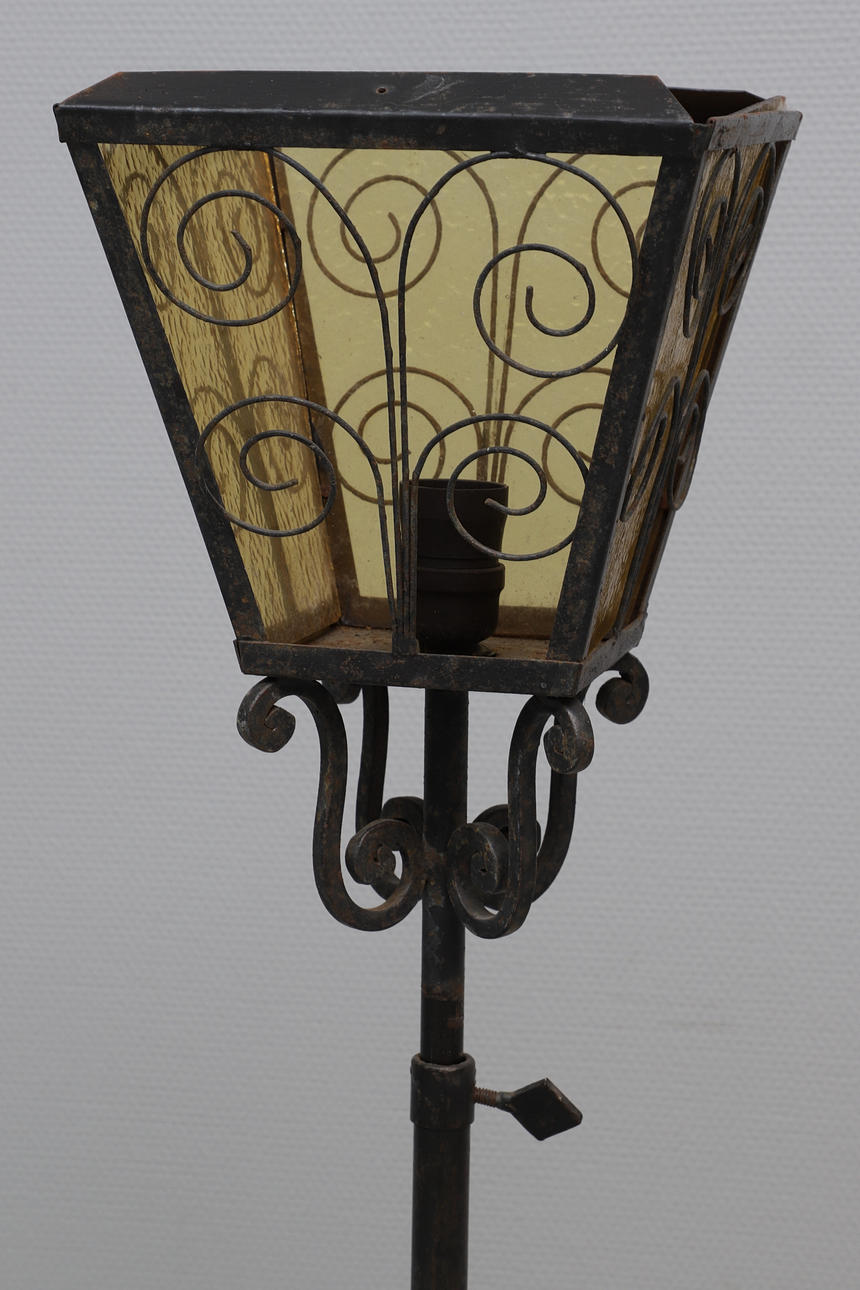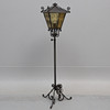 STEHLEUCHTE, LATERNE, Schmiedeeisen & Glas.